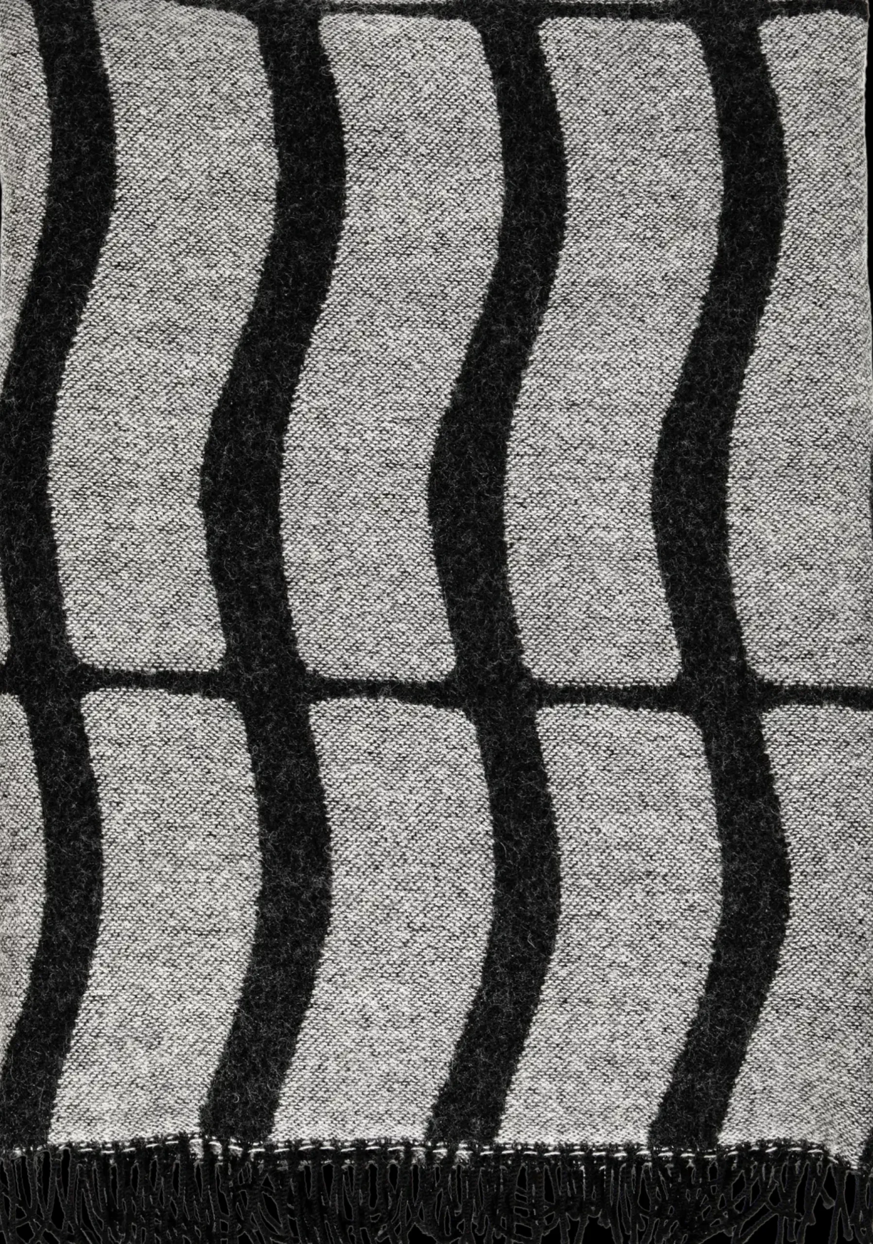 Aarikan Maius-torkkupeitto on lämmin, ja siinä on hapsut. Vastavärit kääntöpuolella. 100 % villa. Mitat 130 x 170 cm. Suunniteltu Suomessa.