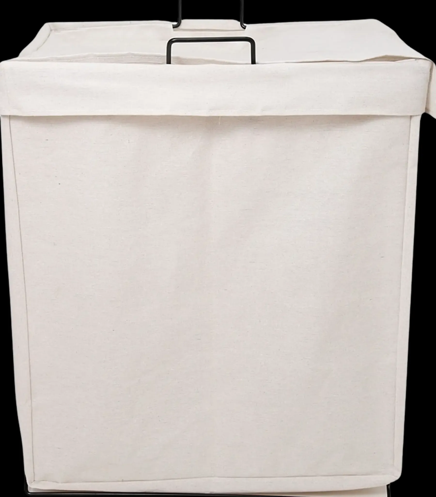 Pyykkikori, jossa on kaksi lokeroa ja tarranauhalla kiinnitettävä kansi. SKANÖR-korissa on kaksi kahvaa sivuilla, joten korin kantaminen pyykkitupaan on helppoa. Kori seisoo tukevasti metallirungon ansiosta. Mitat: Korkeus: 63 cm. Pituus: 55 cm. Leveys: 39 cm.
