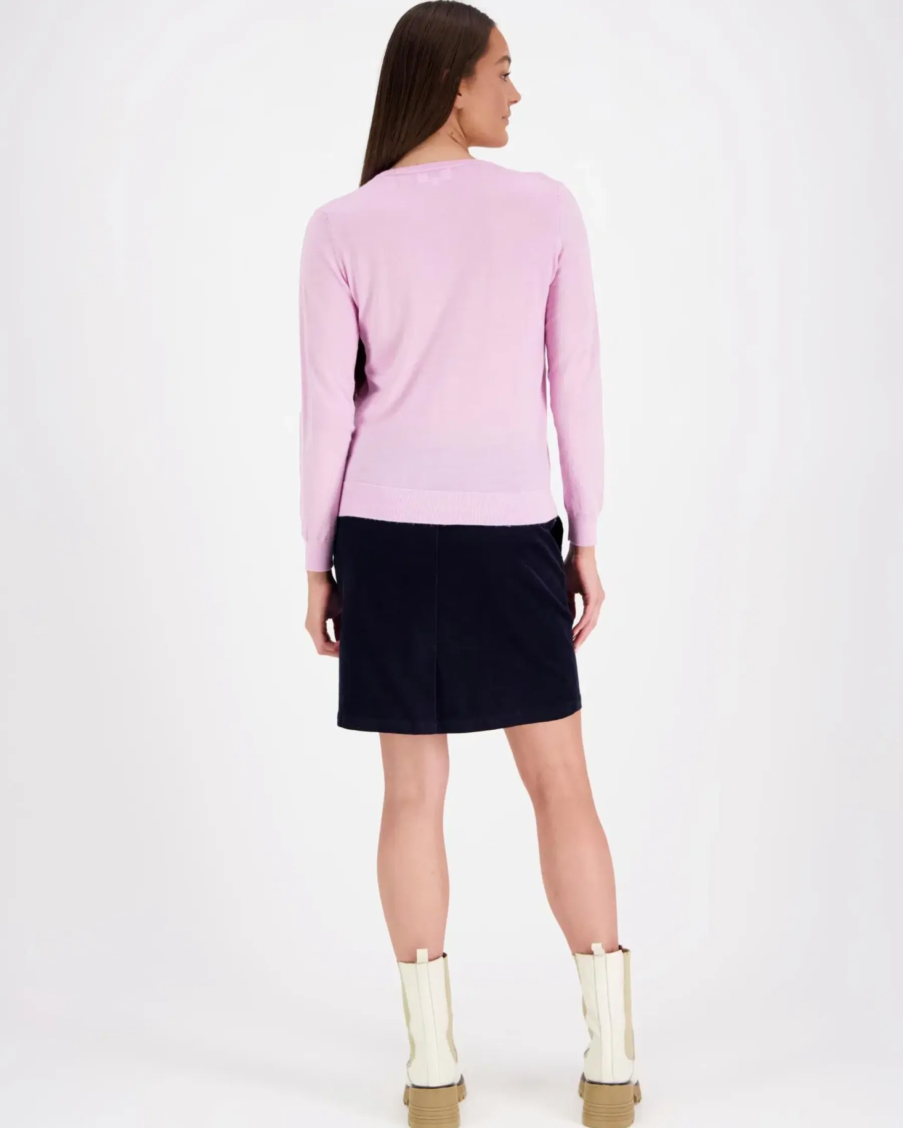 Ajaton merinoneuletakki pyöreällä pääntiellä. Pääntiellä, hihansuissa ja helmassa joustava ribneulos. Koossa M rinnanympärys noin 101 cm, olka-helma pituus noin 60 cm. Materiaali vastuullisesti tuotettua korkealuokkaista 100% merinovillaa.