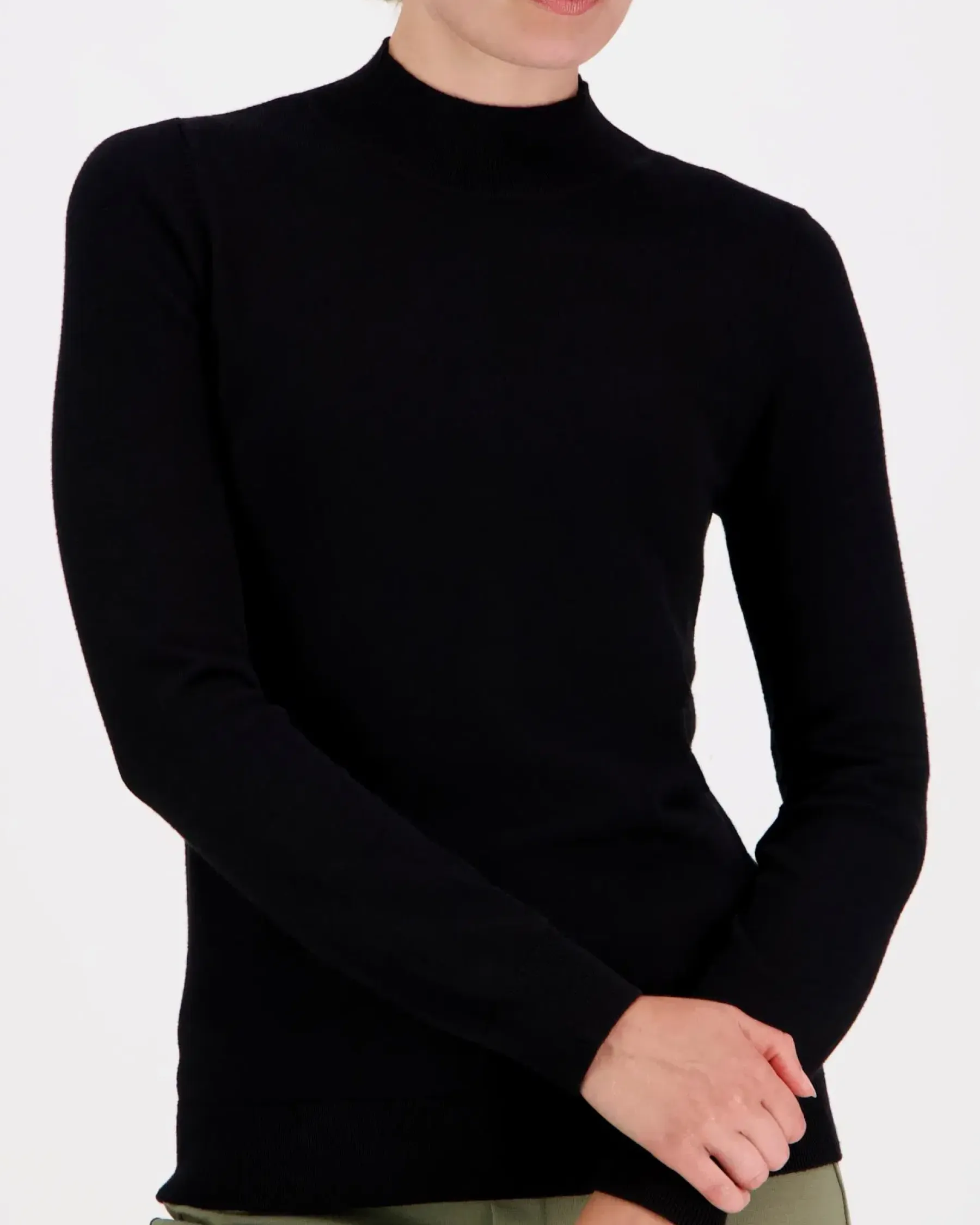 Ajaton pitkähihainen neulepusero korkealla pääntiellä. Koossa M rinnanympärys noin 92 cm, pituus olalta helmaan noin 62 cm. Materiaali miellyttäväää ja hieman joustavaa viskoosi-polyamidia.