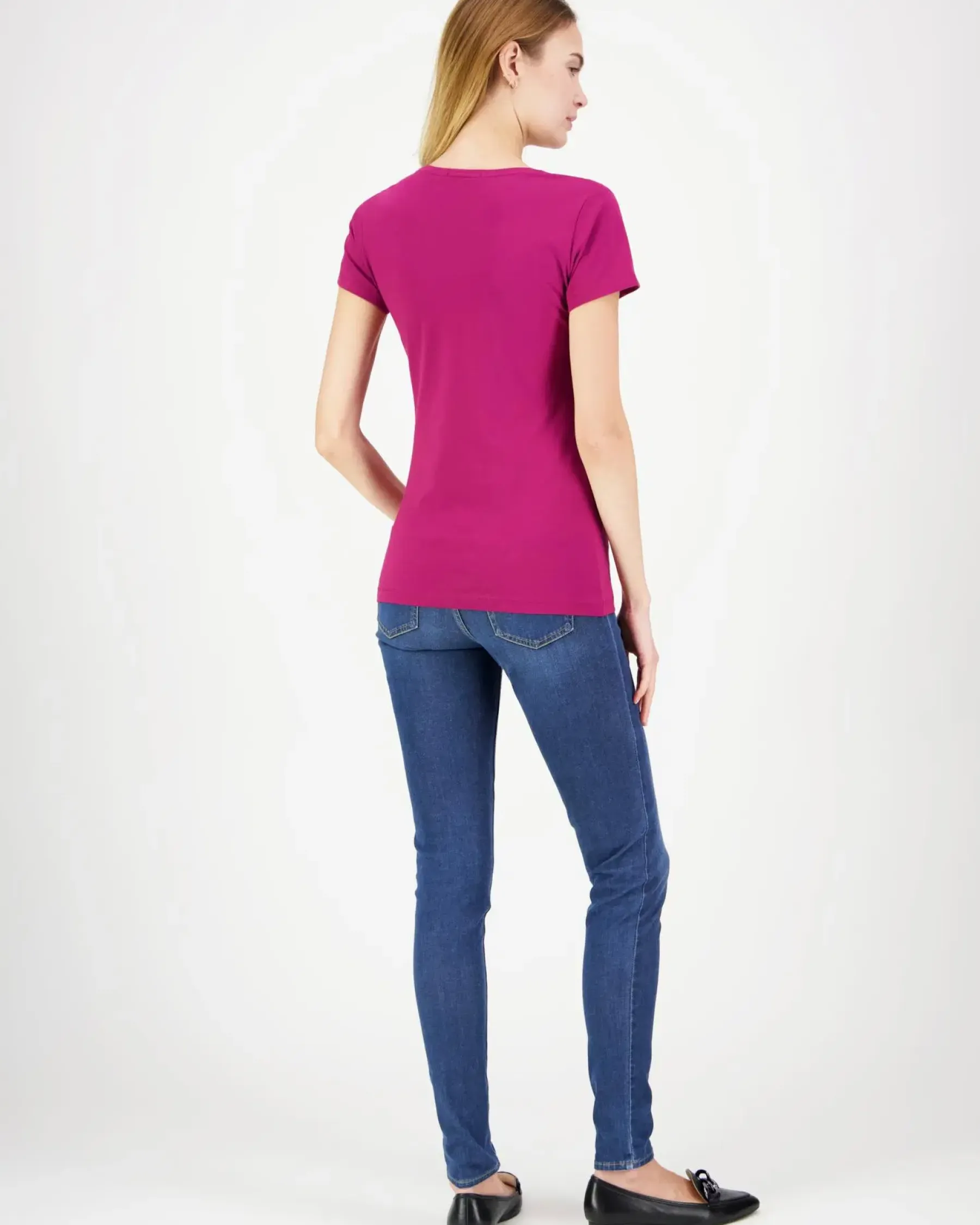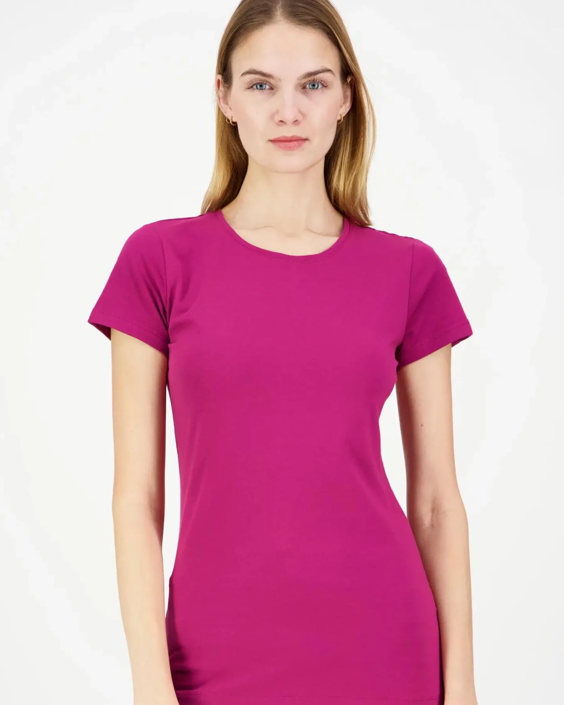 Aventuran yksivärinen trikoopaita pyöreällä pääntiellä ja lyhyilla hihoilla on valmistettu pehmeästä ja hengittävästä puuvillasta ja joustavasta elastaanista. Klassinen trikoopaita, joka auttaa yhdistämään erilaisia asukokonaisuuksia.