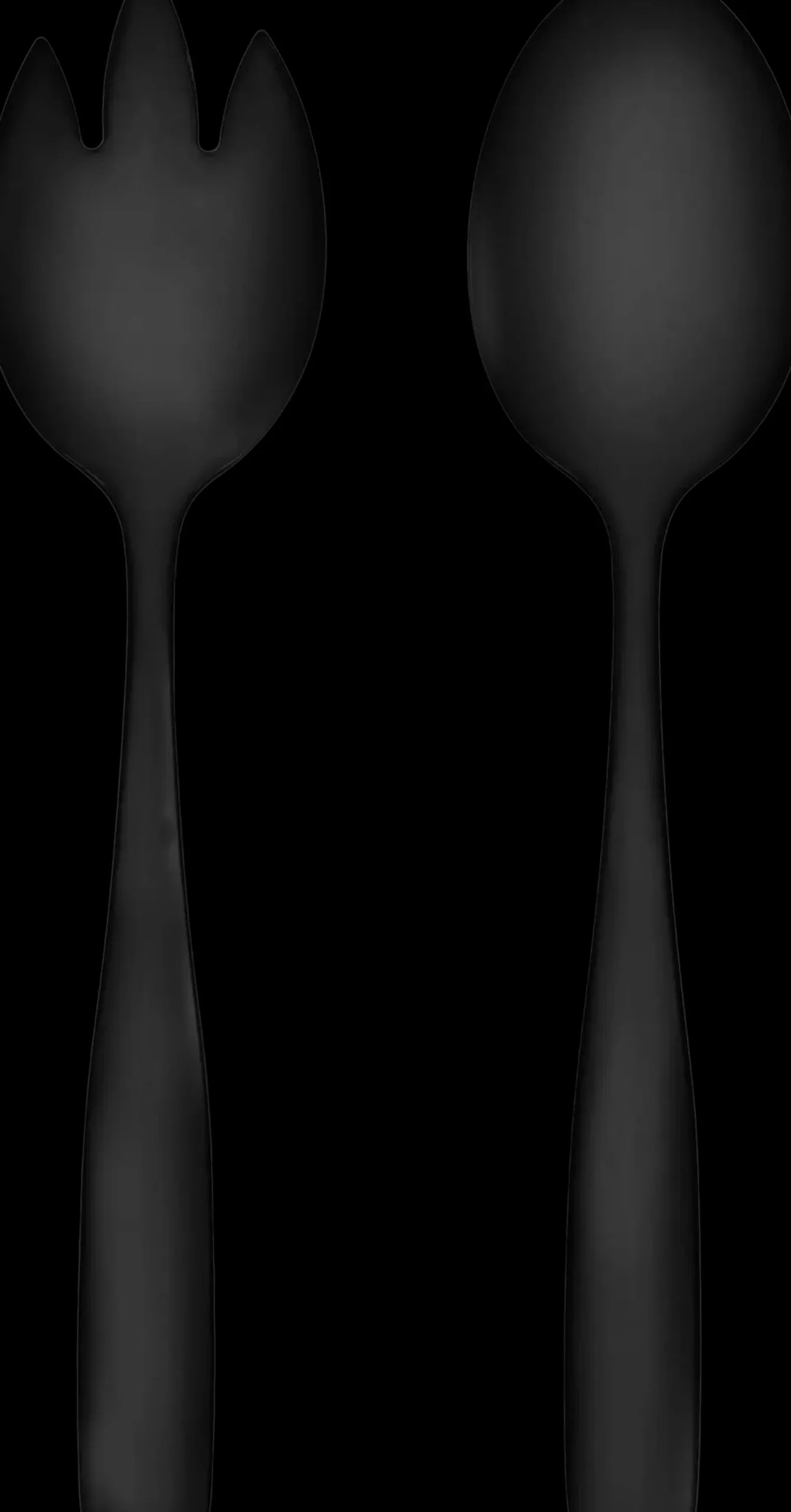 Matta mustat teräksiset salaattiottimet. Vahvuus 2mm pituus 21,8cm.