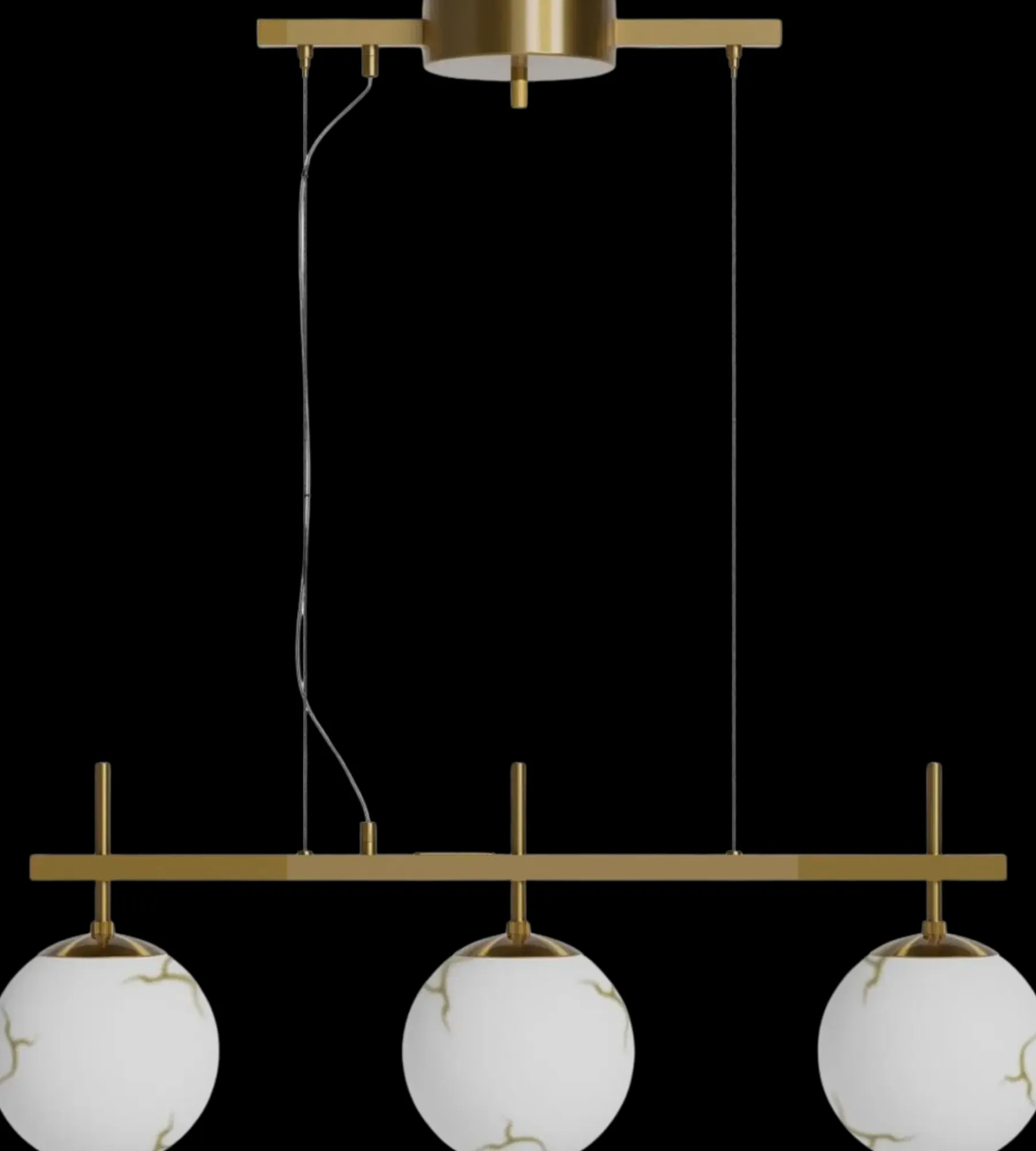 Lineaarinen Bellagio on ruokailutilan katseenvangitsija – kolmen lasikuvun rytmi rakentaa tasapainoisen, art deco -vivahteisen siluetin. Marmoroidut opaalilasit pehmentävät valon kauniiksi tunnelmaliseksi hehkuksi, joka tekee kattauksesta kutsuvan kodikkaan. Sopii myös kapean keittiösaarekkeen valaisimena – lämmin messinki ja pehmeä lasi tuovat tilaan rauhallisen, viimeistellyn tunnelman.
