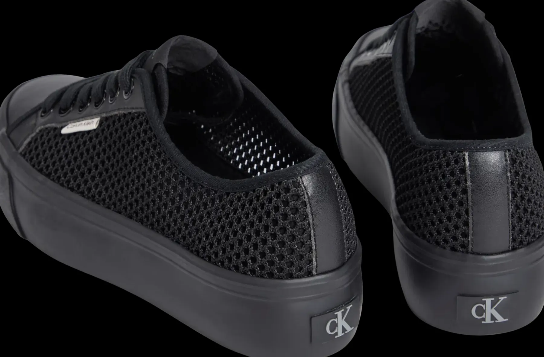 Calvin Klein Lace up mesh tennarit yhdistävät modernin muotoilun ja mukavuuden. Nämä tennarit ovat täydellinen valinta rentoon ja tyylikkääseen arkikäyttöön. Pohjan korkeus 3 cm. Kengän päällinen valmistettu kierrätetyistä materiaaleista.