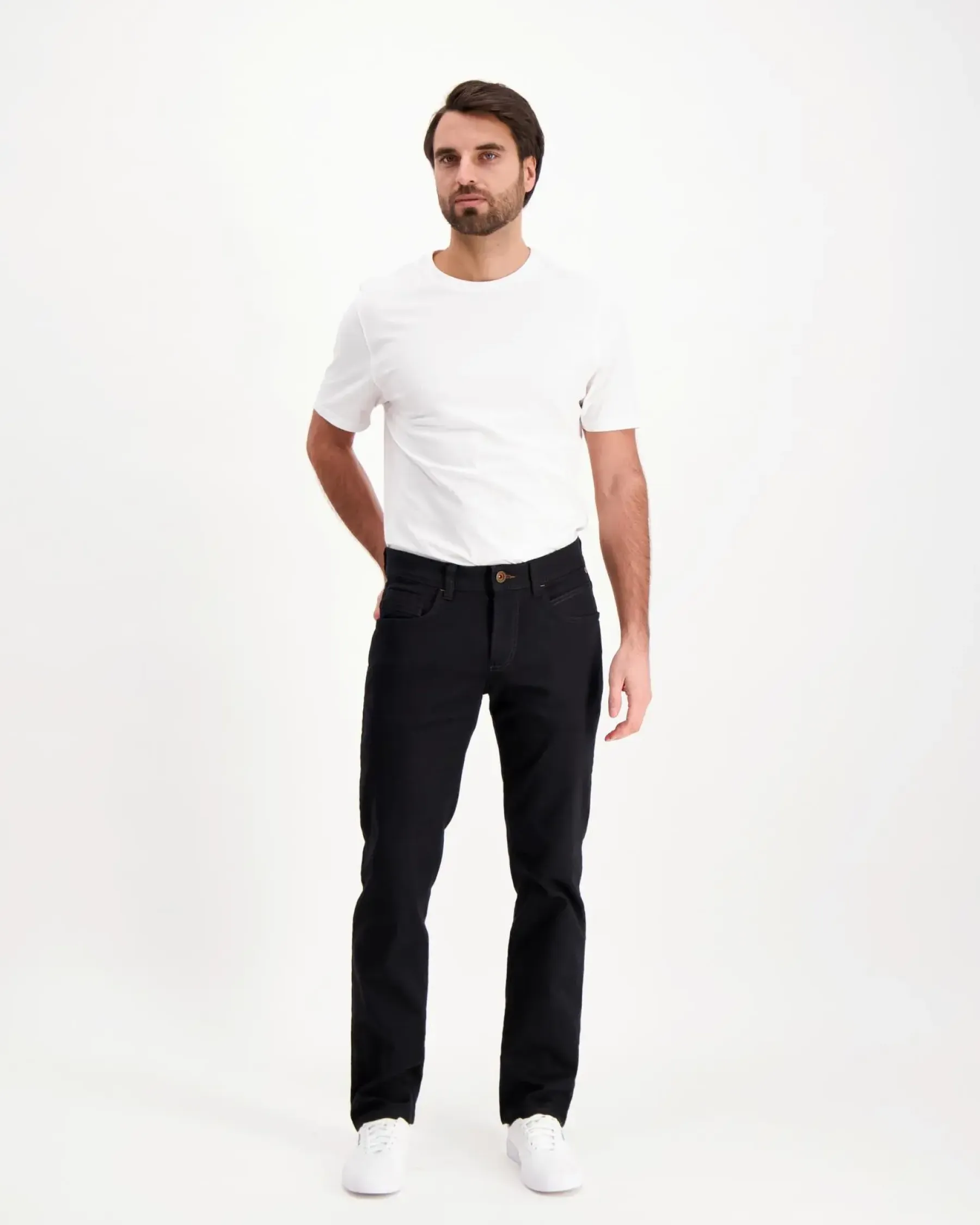Näissä laadukkaissa miesten farkuissa yhdistyvät tyyli, mukavuus ja kestävyys. Farkut on suunniteltu suorilla lahkeilla tarjoten klassisen ilmjeen ja istuvuuden. Puuvilla tekee farkuista hengittävät ja miellyttävät päällä, kun elastaani antaa farkuille joustavuutta, joka lisää farkkujen käyttömukavuutta. Farkuissa on perinteset viisi taskua, jotka tarjoavat käytännöllisyyttä ja mahdollisuuden säilyttää pieniä tavaroita käden ulottuvilla.
