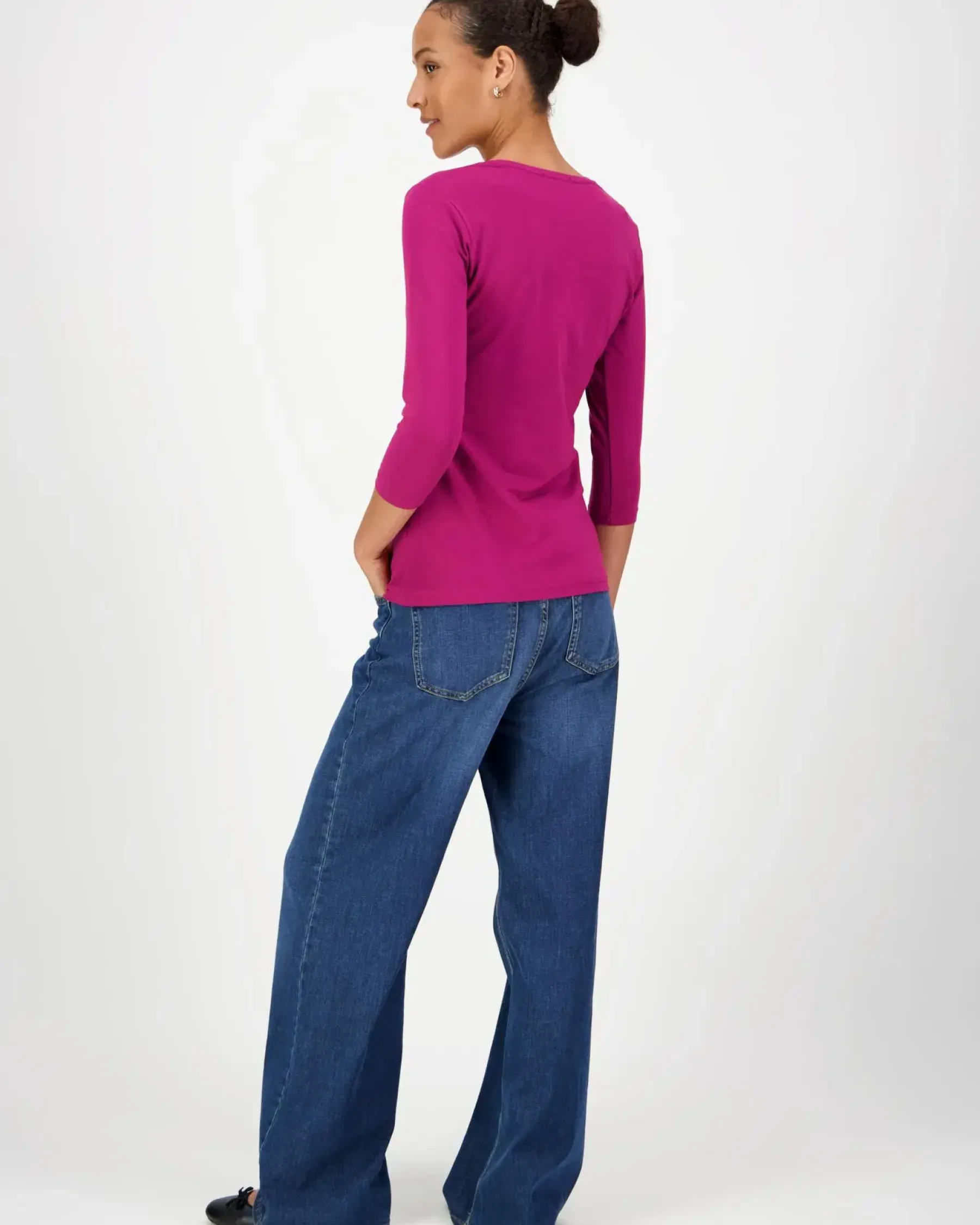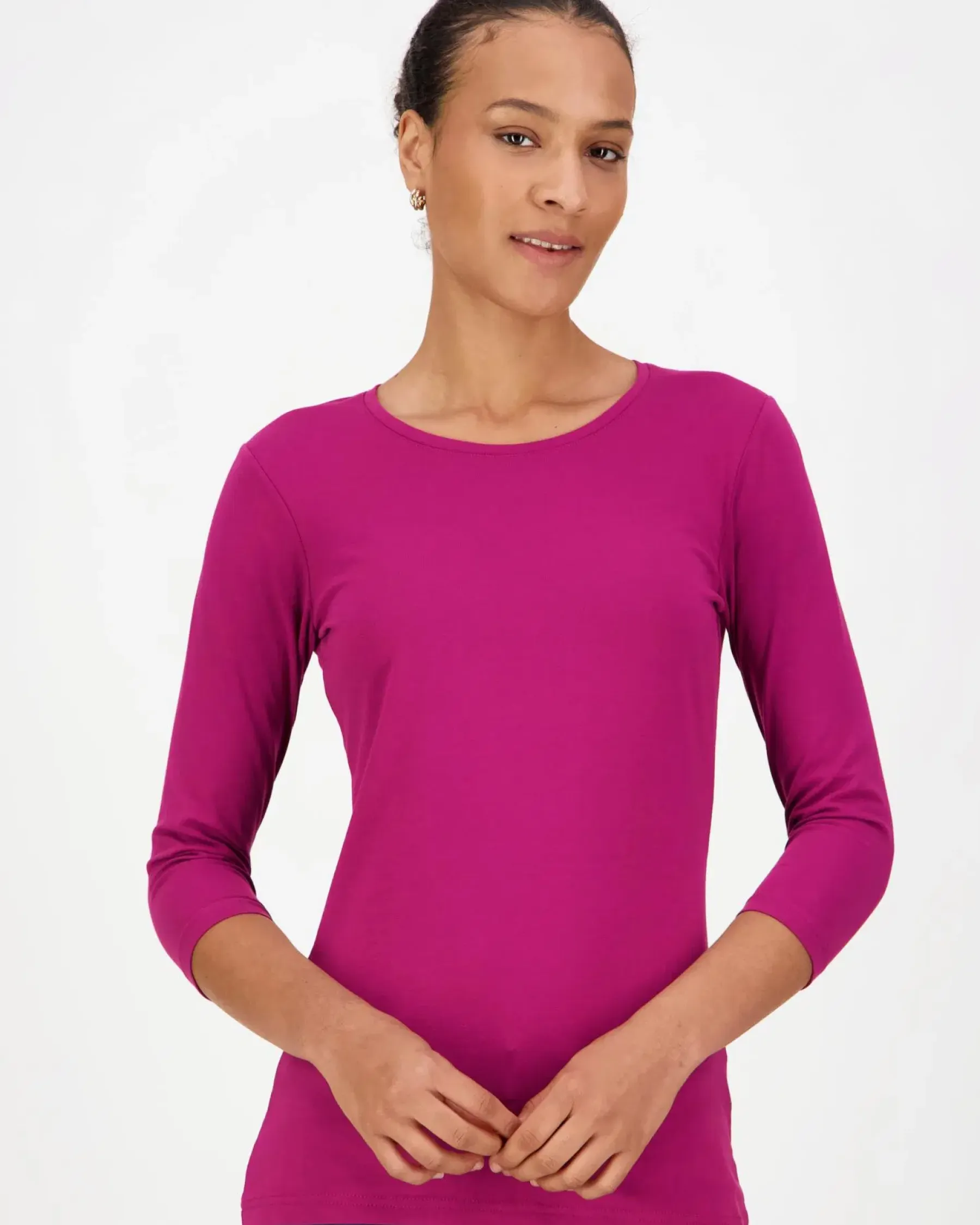Aventuran yksivärinen trikoopaita pyöreällä pääntiellä ja 3/4 pituisilla hihoilla on valmistettu pehmeästä ja hengittävästä puuvillasta ja joustavasta elastaanista. Klassinen trikoopaita, joka auttaa yhdistämään erilaisia asukokonaisuuksia.