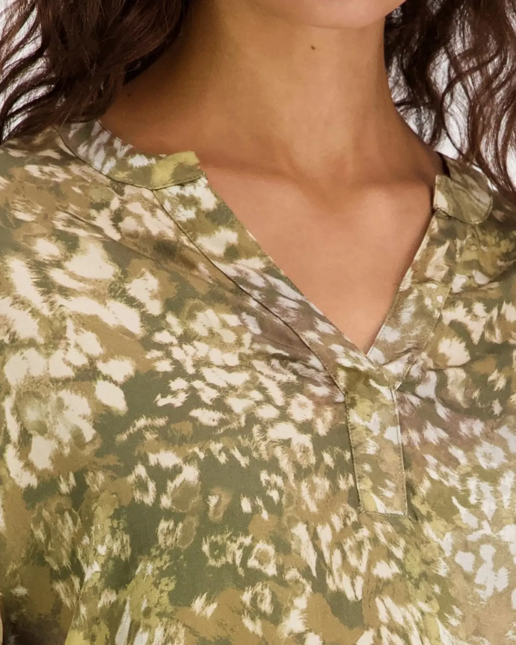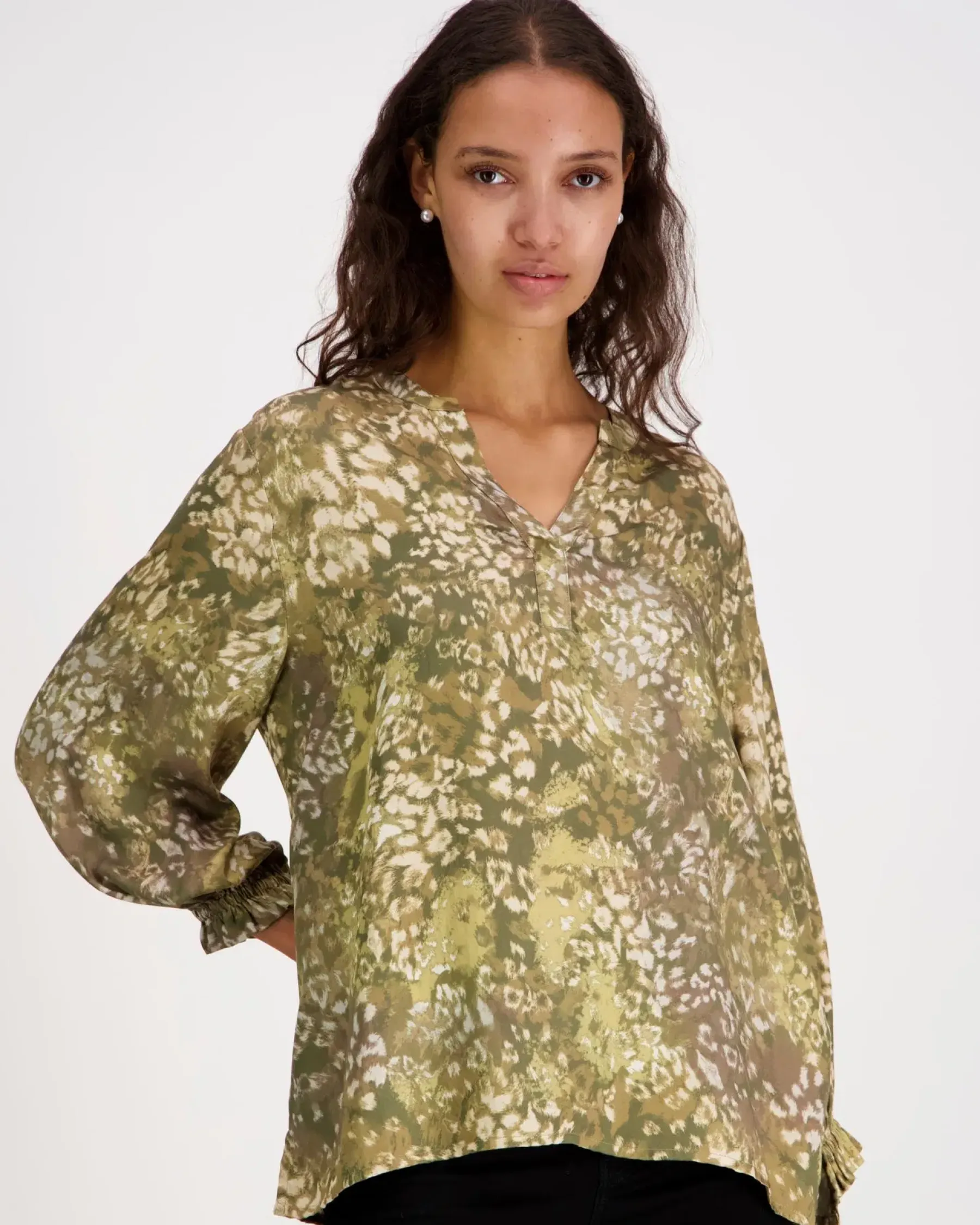 Kuosillinen pään päältä puettava paitapusero pitkillä hihoilla.Puserossa on o-pääntie ja hihansuut ovat elastiset.