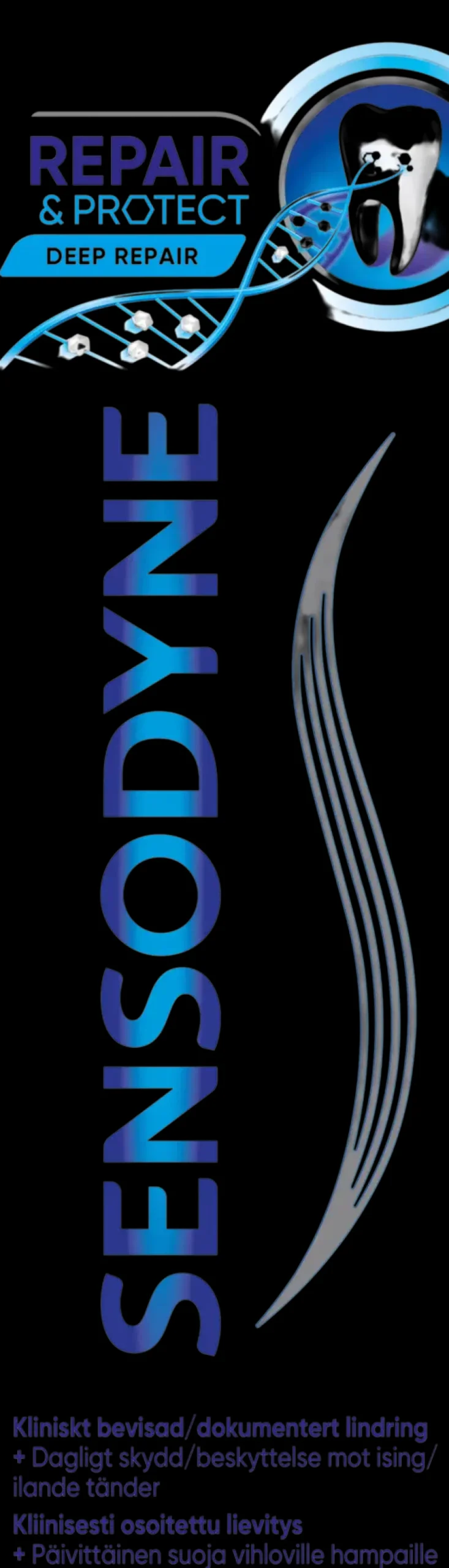 Päivittäiseen käyttöön tarkoitettu Sensodyne Repair & Protect Deep Repair hammastahna korjaa ja suojaa hampaiden vihlovia alueita kahdesti päivässä käytettynä. Ainutlaatuinen NovaMin-aineosa lievittää kliinisesti osoitetusti vihlontaa, sillä se muodostaa hampaiden vihlovien alueiden päälle suojaavan kerroksen. Päivittäiseen käyttöön tarkoitettu Sensodyne Repair & Protect Deep Repair -hammastahna sisältää hampaita vahvistavaa fluoria.