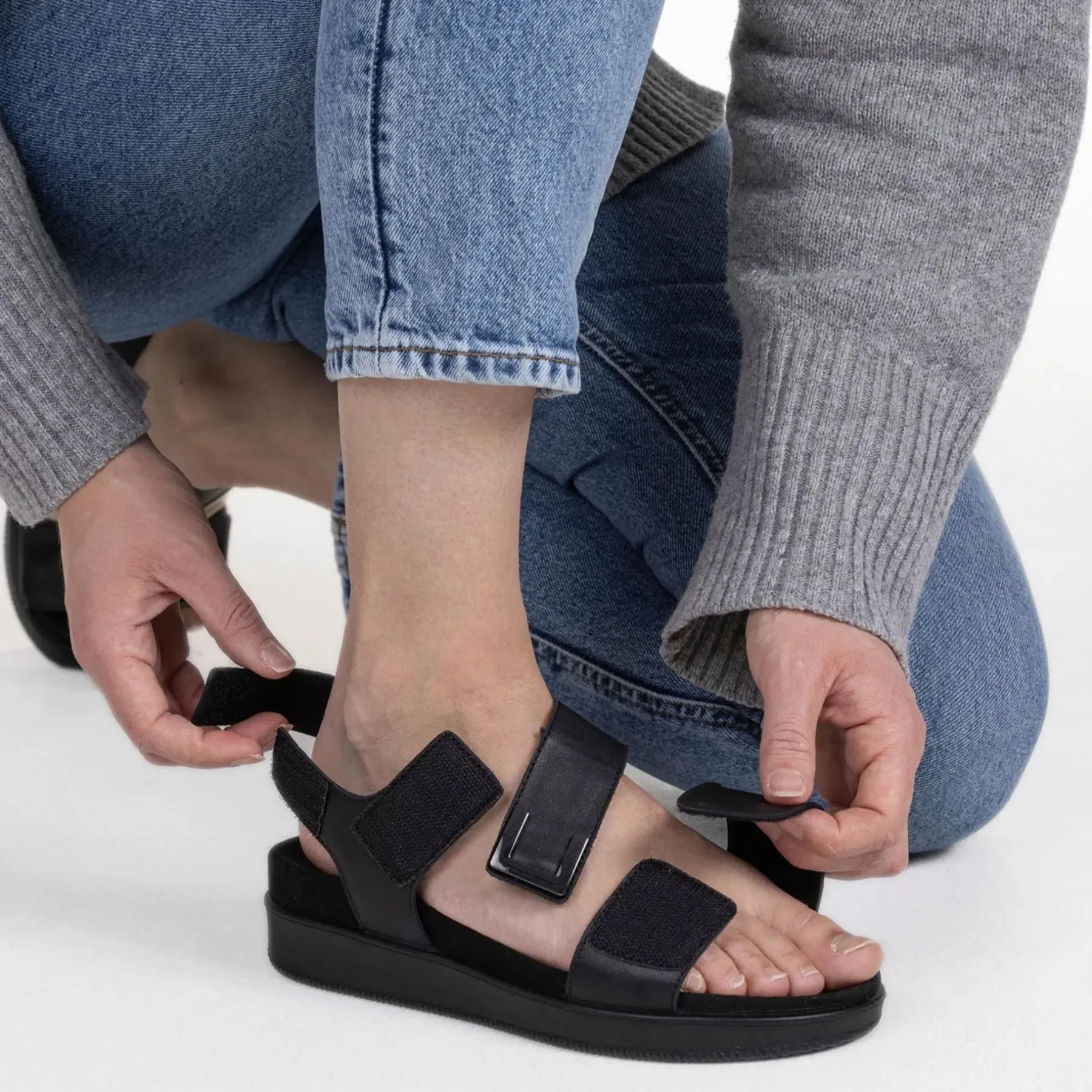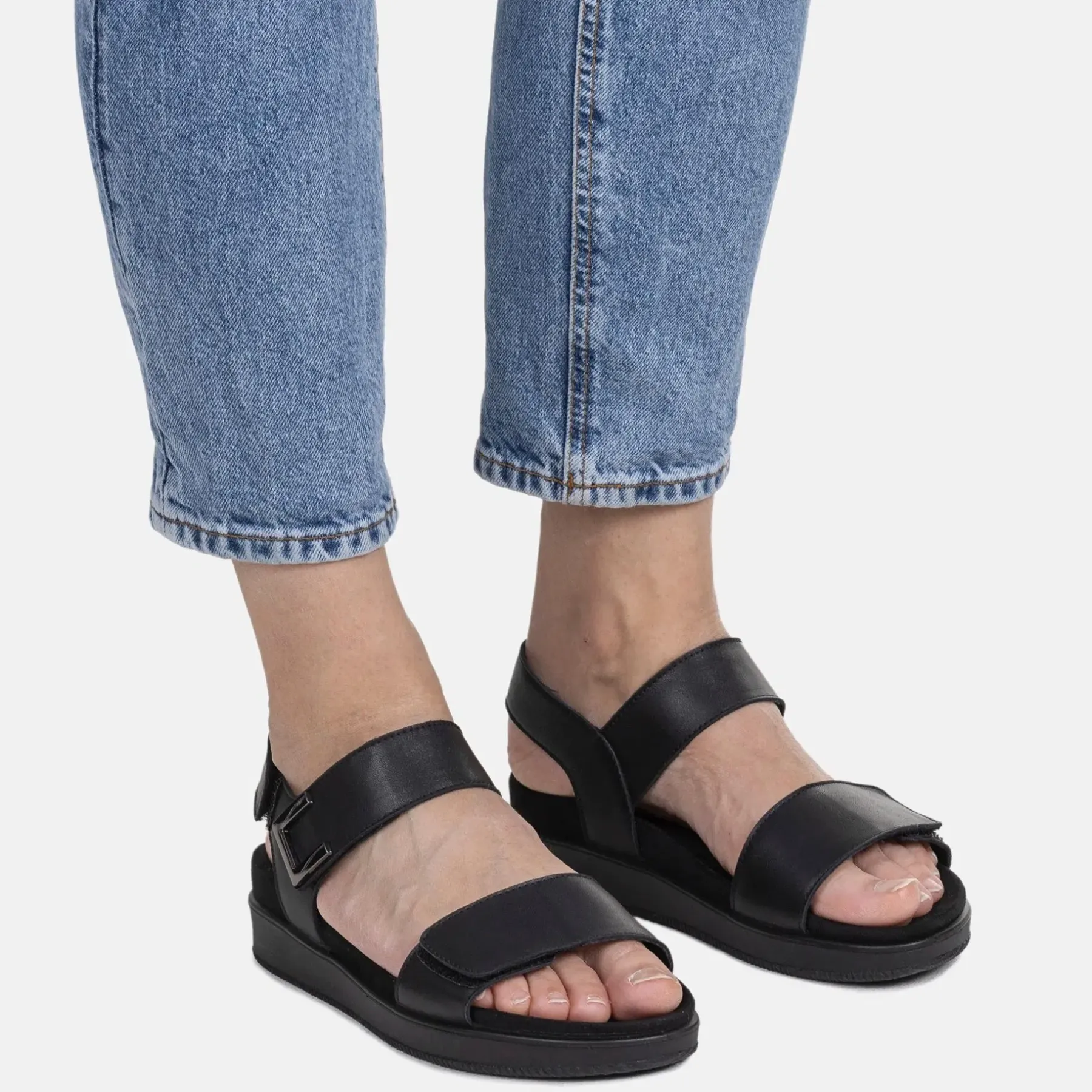 Klassisen kauniit TALJA-sandaalit sopivat sekä arkeen että juhlaan. Sandaalien säädettävät remmit, muotoiltu joustava jalkapeti sekä paksu pohja tuovat käyttömukavuutta. Nämä sandaalit istuvat monenlaiseen jalkaan kolmen säädettävän tarraremmin avulla. Päällinen ja vuori mustaa nappanahkaa, sisäpohjallinen mikrokuitumokkaa. Joustava ja kevyt PU-pohja. Mukava, hiukan tilavampi H-lesti.