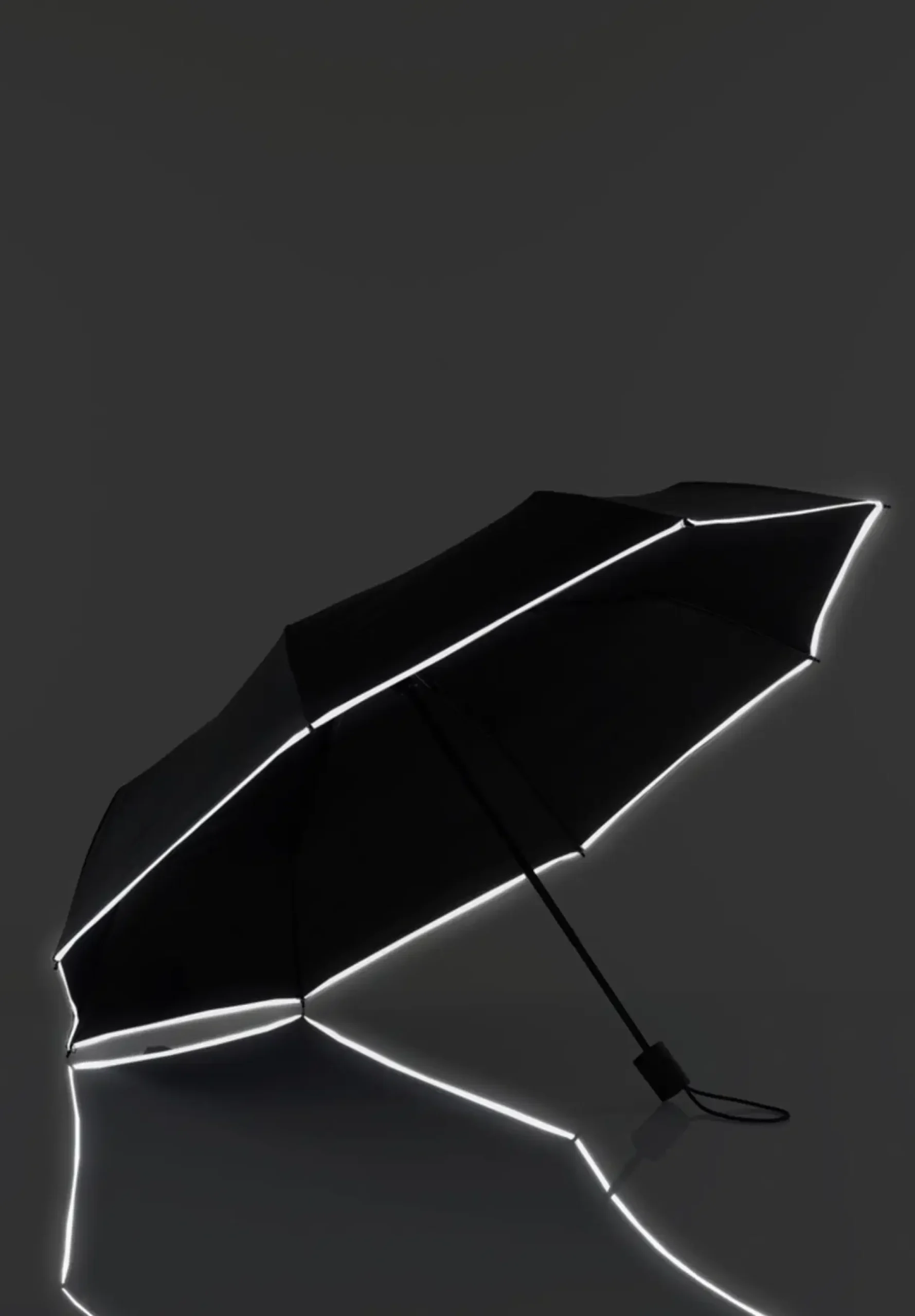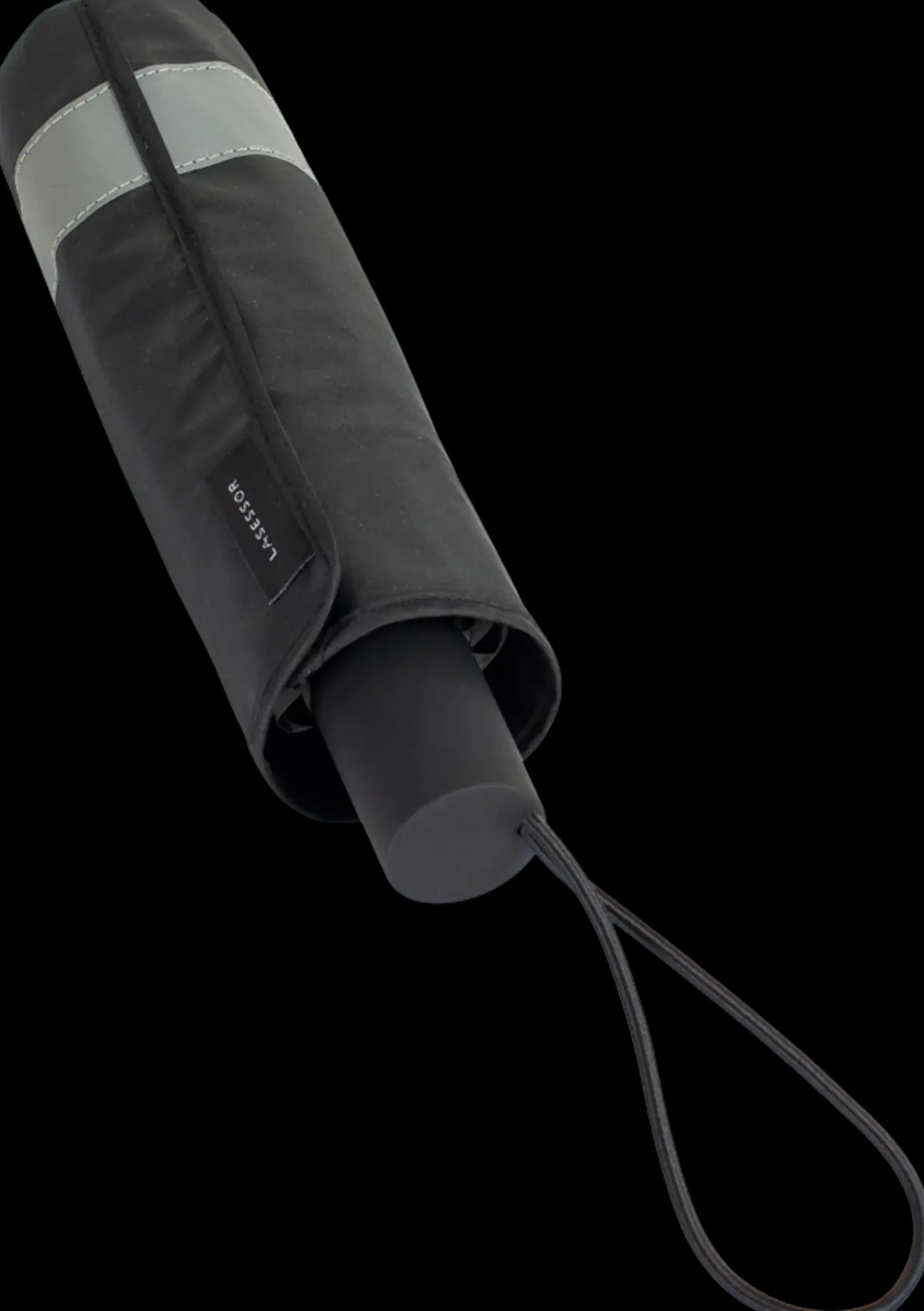 Kokoontaittuva sateenvarjo 8775R heijastinnauhalla. Tuulenkestävä, 1 vuoden takuu. Reunassa heijastinnauha.