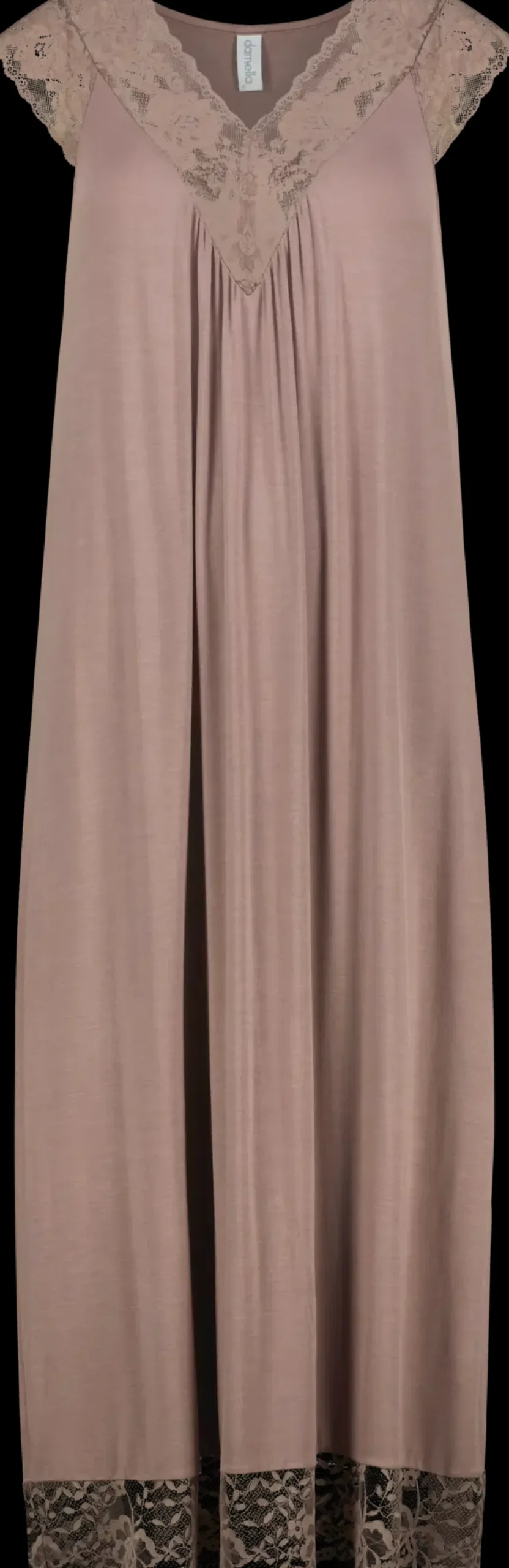 Hihaton yöpaita, Ecovero viskoosia, kaula-aukossa, hihan suussa ja helmassa pitsiä, pituus 90 cm