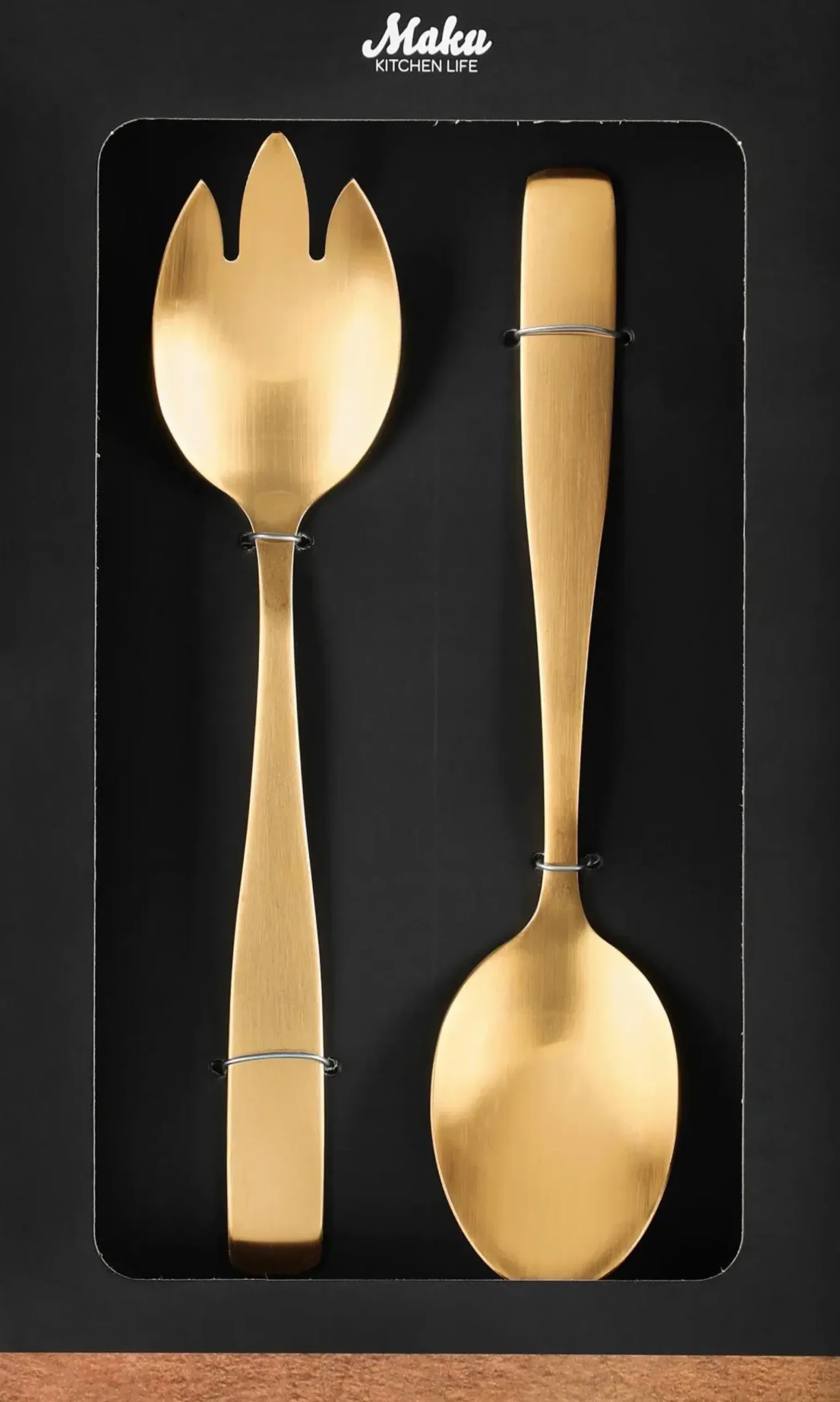 Tyylikkäät salaattiottimet ovat oleellinen osa kattausta. Samppanjakulta on jännittävä värivaihtoehto kattaukseen, täydellinen kun haluat yllättää. Maku salaatinotinsetti on myös täydellinen lahja ylellisyyden ystävälle. Ruostumaton teräs on pinnoitettu kestävällä PVD-pinnoitteella.