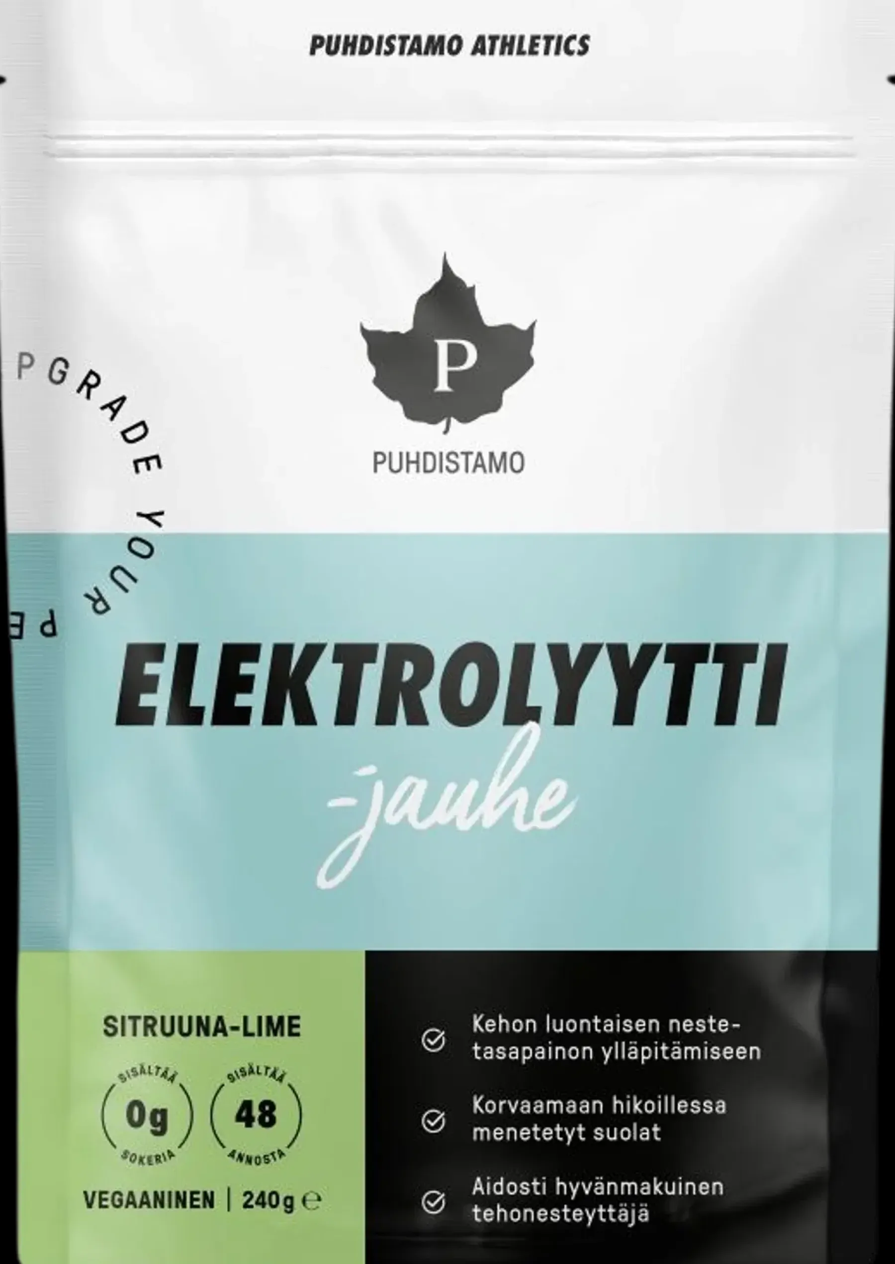 Puhdistamon elektrolyyttijauhe on sokeriton, kokonaisvaltainen ja herkullisen makuinen elektrolyyttijuomajauhe, joka auttaa pitämään yllä tarpeellisten elektrolyyttien tasapainoa elimistössämme. Se sisältää natriumin lähteenä toimivan Guérande-merisuolan sekä muiden keskeisimpien elektrolyyttien lisäksi muun muassa C-vitamiinia sekä orgaanista rikkiä (OptiMSM®).
