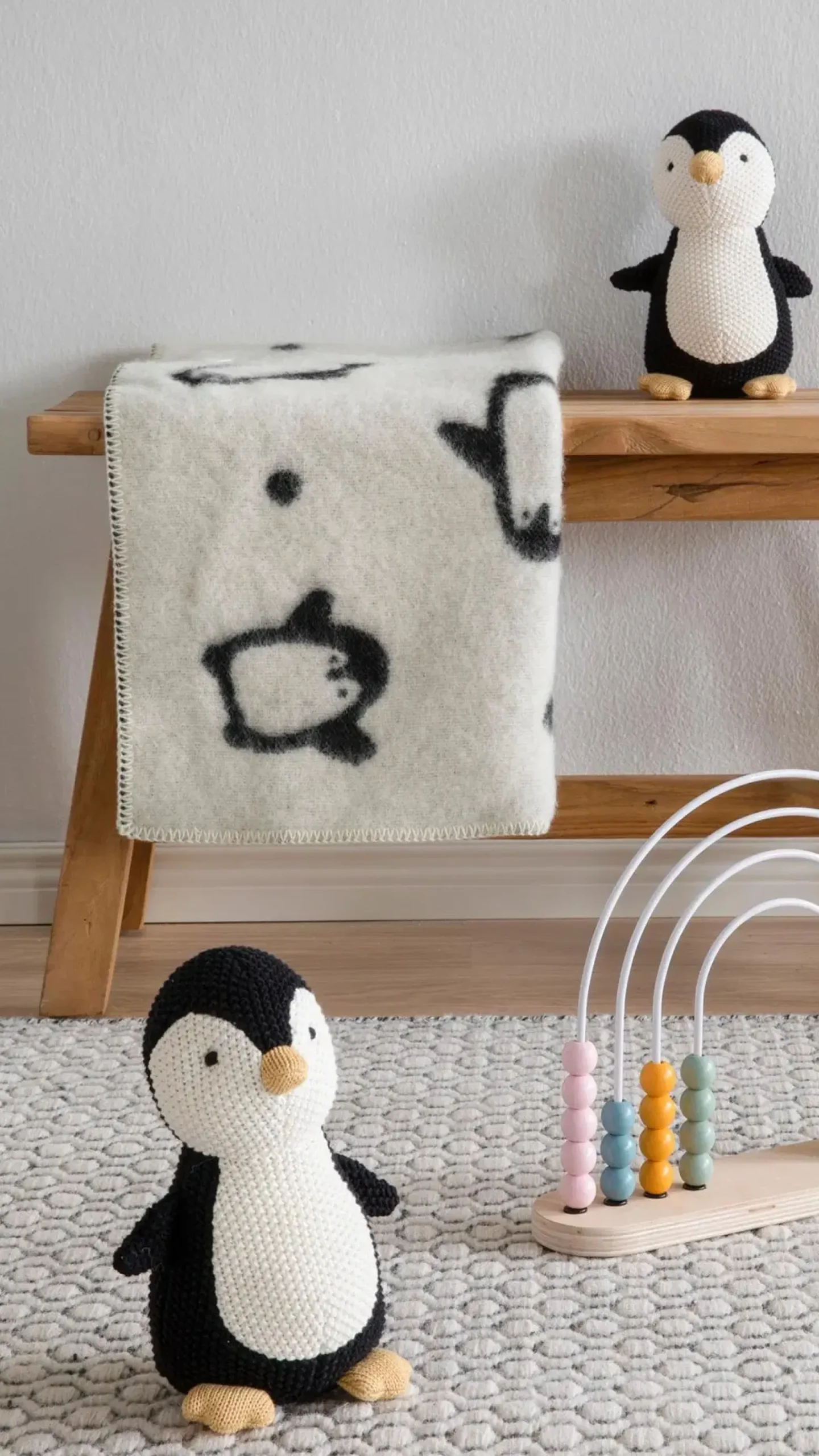 Minna Niskakankaan suunnitteleman Pingviini-kuosin hillitty värimaailma ja graafinen tyyli viehättää ikään katsomatta. Ihanan pehmoinen Pingviini-torkkupeitto tuo lisälämpöä sänkyyn ja siihen on ihana kietotua viileinä iltoina. Torkkupeiton koko on 65×90 cm.