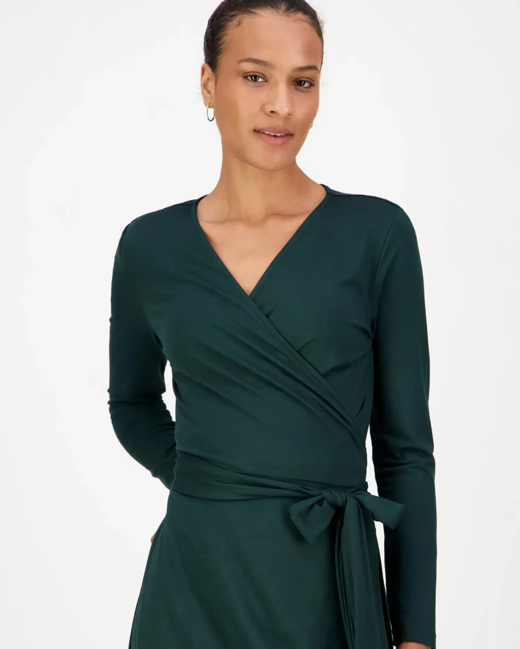 Ajaton naisten mekko – Soft Wrap Dress yhdistää näyttävän kietaisumekon klassiset linjat ja modernin tyylin. Tämä vastuullisesti valmistettu mekko on tehty korkealaatuisesta EcoVero™-viskoositrikoosta, joka tuntuu iholla silkkimäisen pehmeältä ja laskeutuu kauniisti. Tyylikäs kietaisumekko sopii täydellisesti sekä arkeen että juhlaan. Mukava ja naisellinen leikkaus vyötäröllä sekä helposti säädettävät nauhat varmistavat täydellisen istuvuuden jokaiselle vartalotyypille. Täyspitkät hihat ja yli polven ulottuva helma luovat klassisen siluetin, joka tekee mekosta ajattoman ja monikäyttöisen valinnan kaikkiin tilanteisiin.
