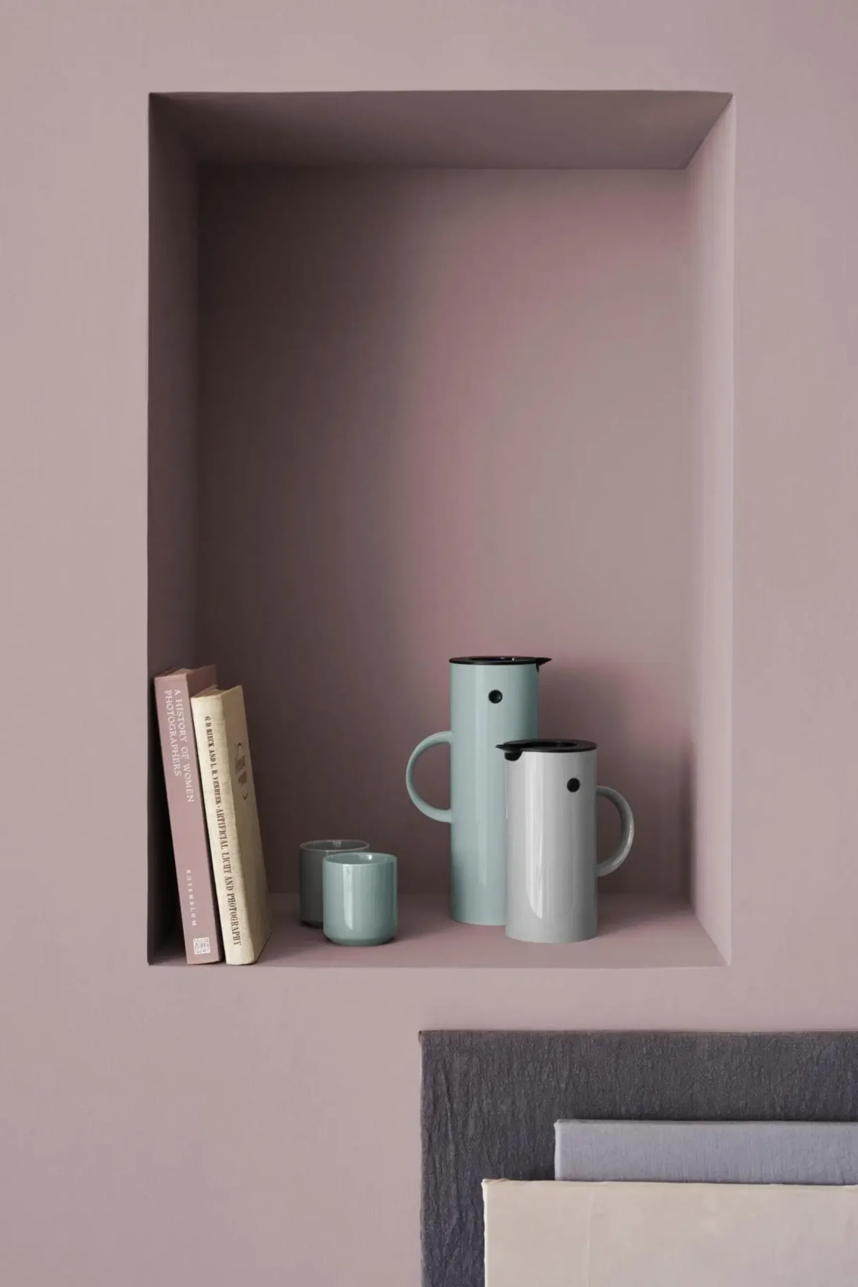 Steltonin tyylikäs 1,0 litran vihertävänharmaa termoskannu EM77 vuodelta 1977 on todellinen aikakautensa design klassikko. Suunnittelija Erik Magnussen. Runkomateriali on terästä ja sisällä tuplaseinämä lasipullo vakuumilla, joka pitää juoman kuumana jopa 12 tuntia. Kahva ja kaato-osa ovat muovia. Korkeus 30 cm ja halkaisija 10,5 cm. Tuotteen helppokäyttöisyys perustuu oivalliseen ”kippaavaan” kaatokorkkiin, jota ei tarvitse avata kaadettaessa. Käytännöllisessä ja laadukkaassa termoskannussa on myös toinen täysin tiivis kierrekorkki esim. kuljetukseen ja pidempään kuumana pitämiseen. Termoskannu on pitkäikänen, sillä siihen saa kaikki osat varaosina. Valmistettu Tanskassa.