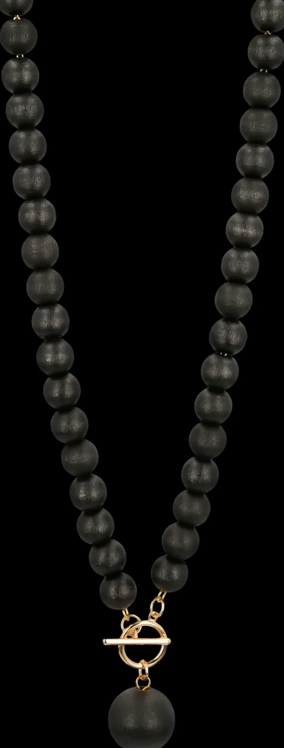 Valma-kaulakorussa on yhdistetty hauskasti puuhelmiä metalliosiin. Pituus: 42 cm. Valmistettu käsityönä Suomessa.