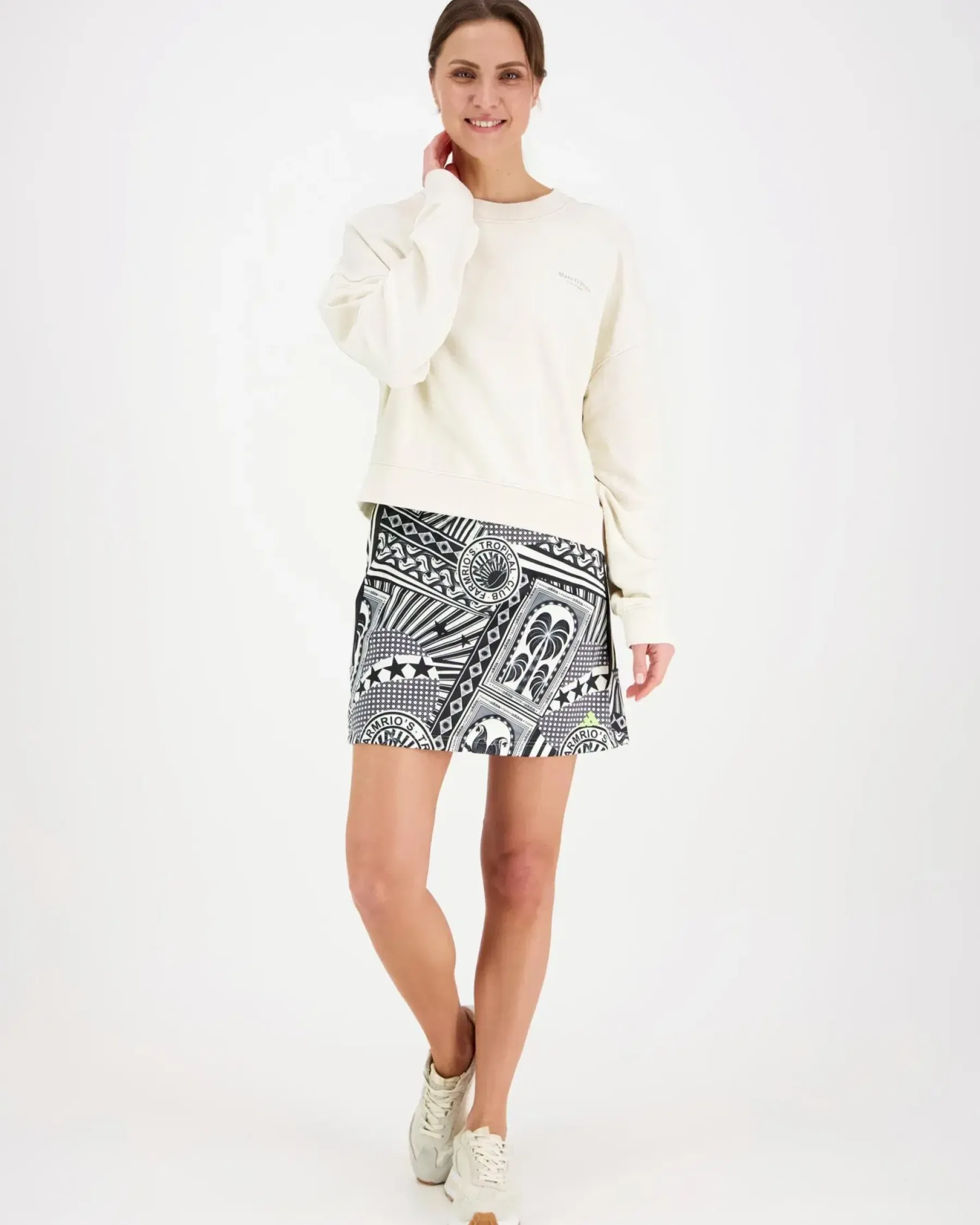 Kuosillinen hame, adidaksen ja Farm Rion yhteistyömallisto.