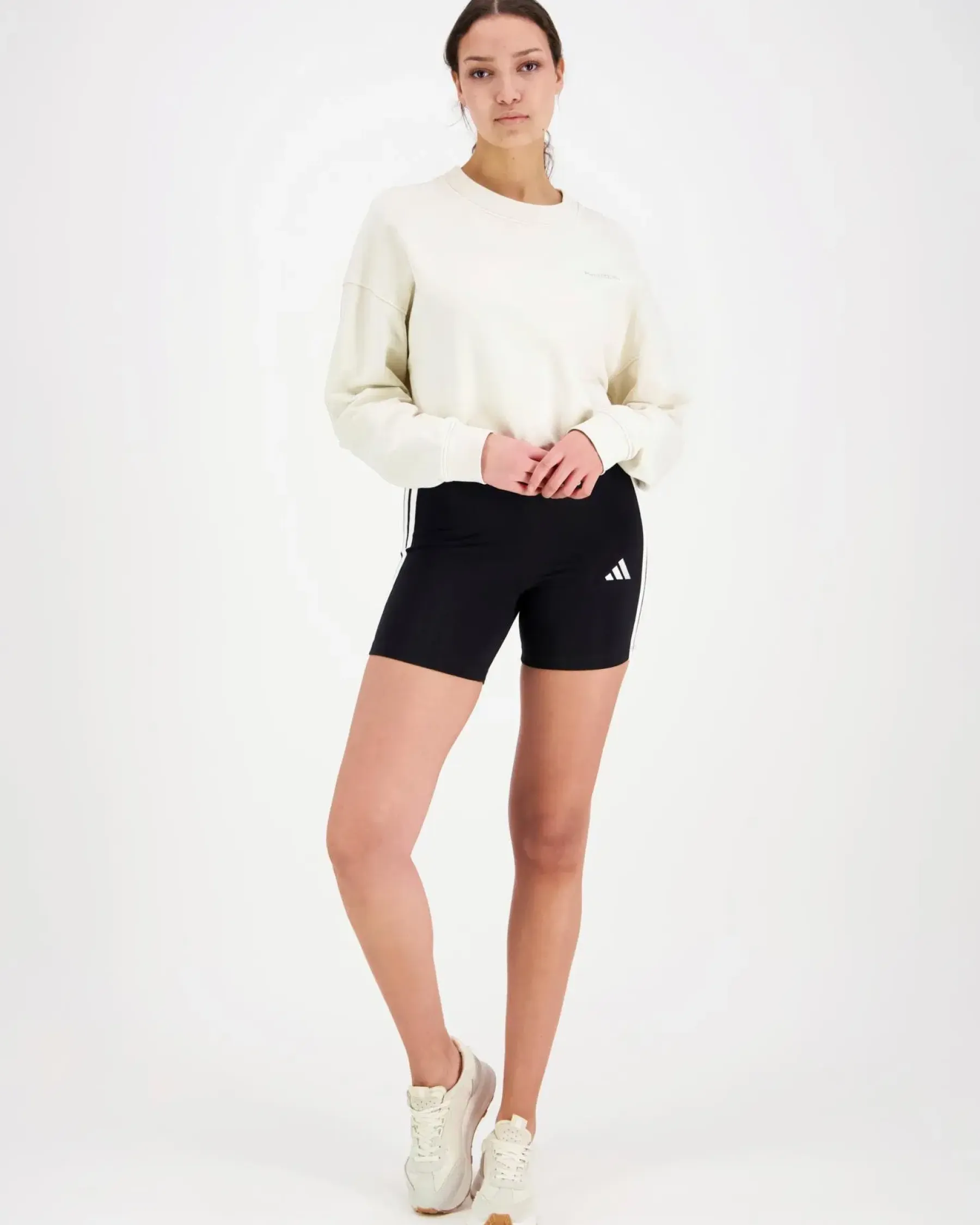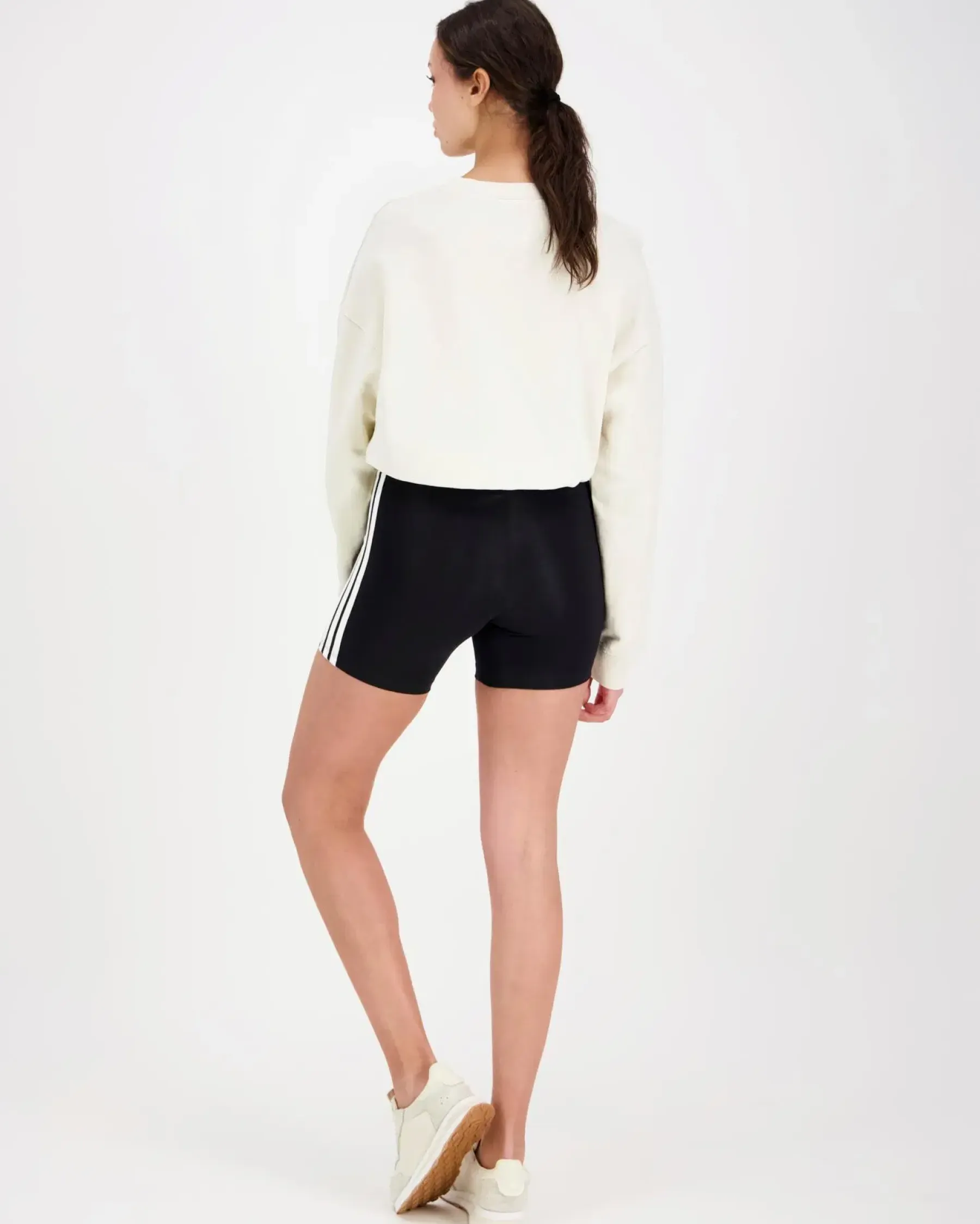 adidaksen shortsit, korkeä vyötärö ja raidat sivuilla