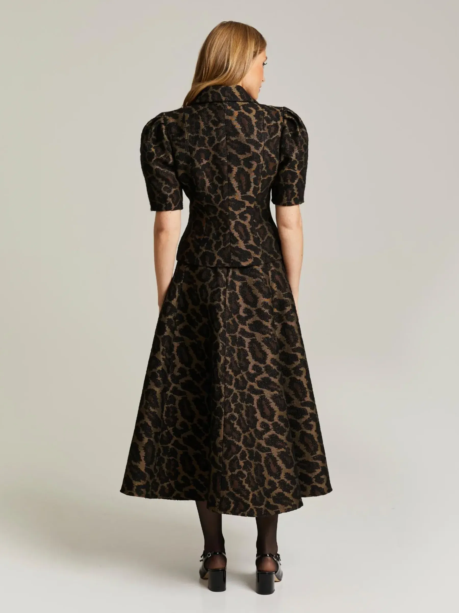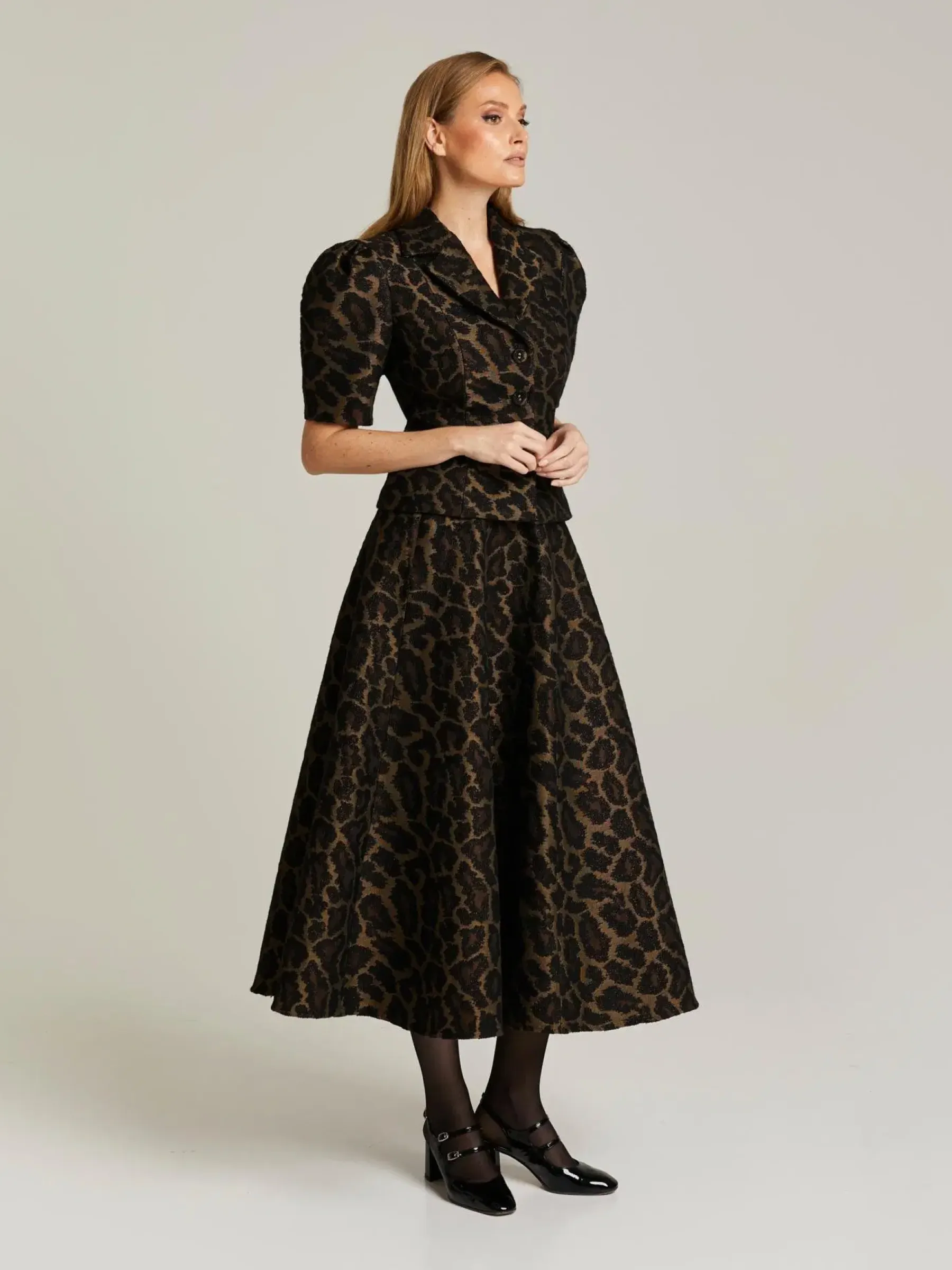 Istuva jakku puhvittavilla, lyhyillä hihoilla. Jakussa on nappikiinnitys edessä.
