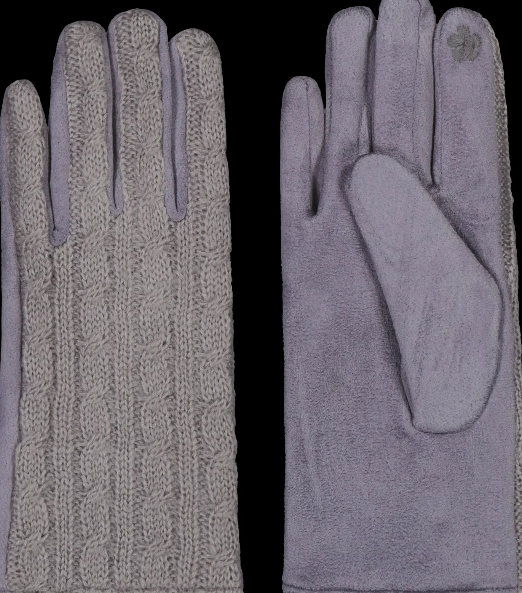 Aventuran käsineiden päällipuoli on kauniisti palmikkokuvioitua neulosta ja kämmenpuoli hieman joustavaa mokkamaista sekoitetta.