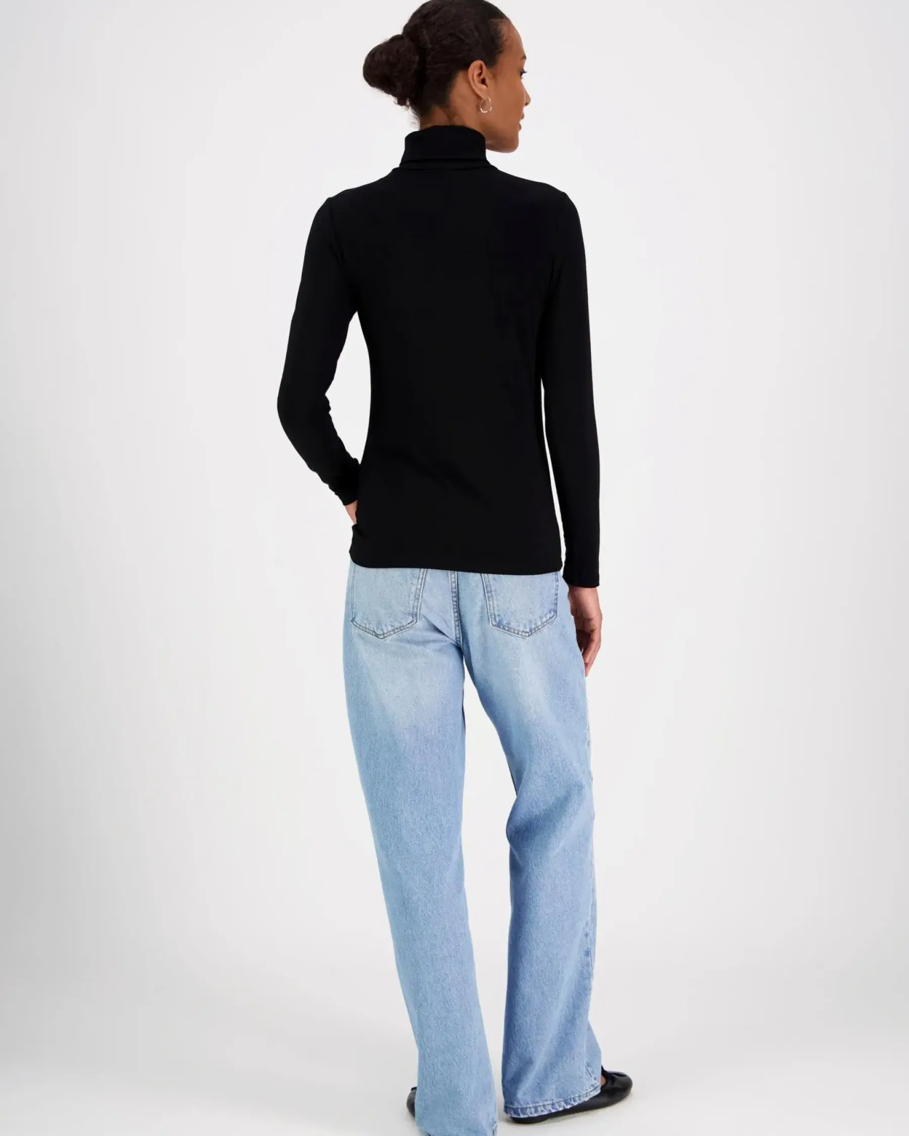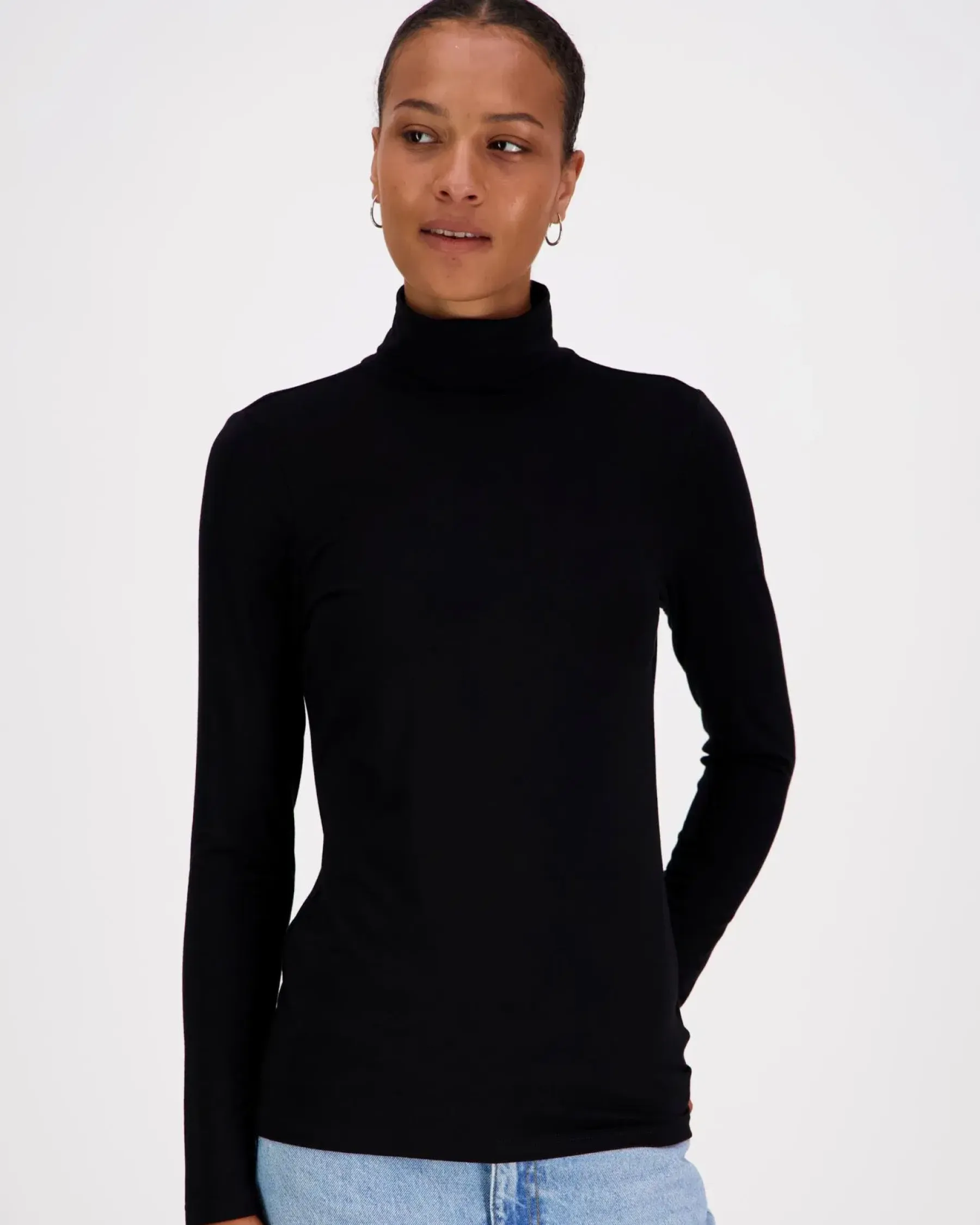 Ajaton pitkähihainen trikoopaita rollneck pääntiellä. Koossa M rinnanympärys noin 92 cm, pituus olalta helmaan noin 64 cm. Materiaali miellyttävää ja hieman joustavaa viskoosi-elastaania.