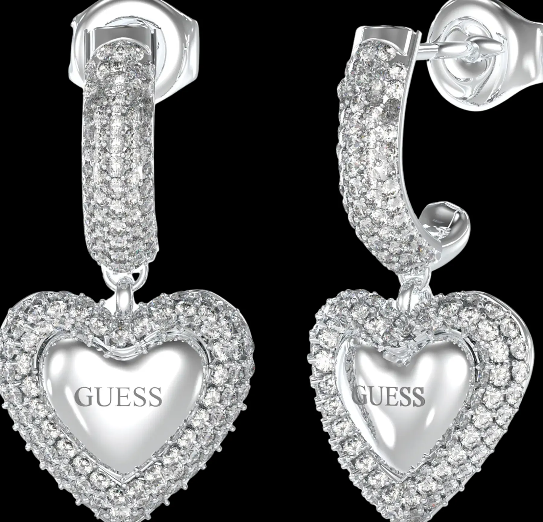 GUESS Beloved sydänkorvakorujen pituus on 25mm. Näyttävät korvakorut on koristeltu kristallikivin