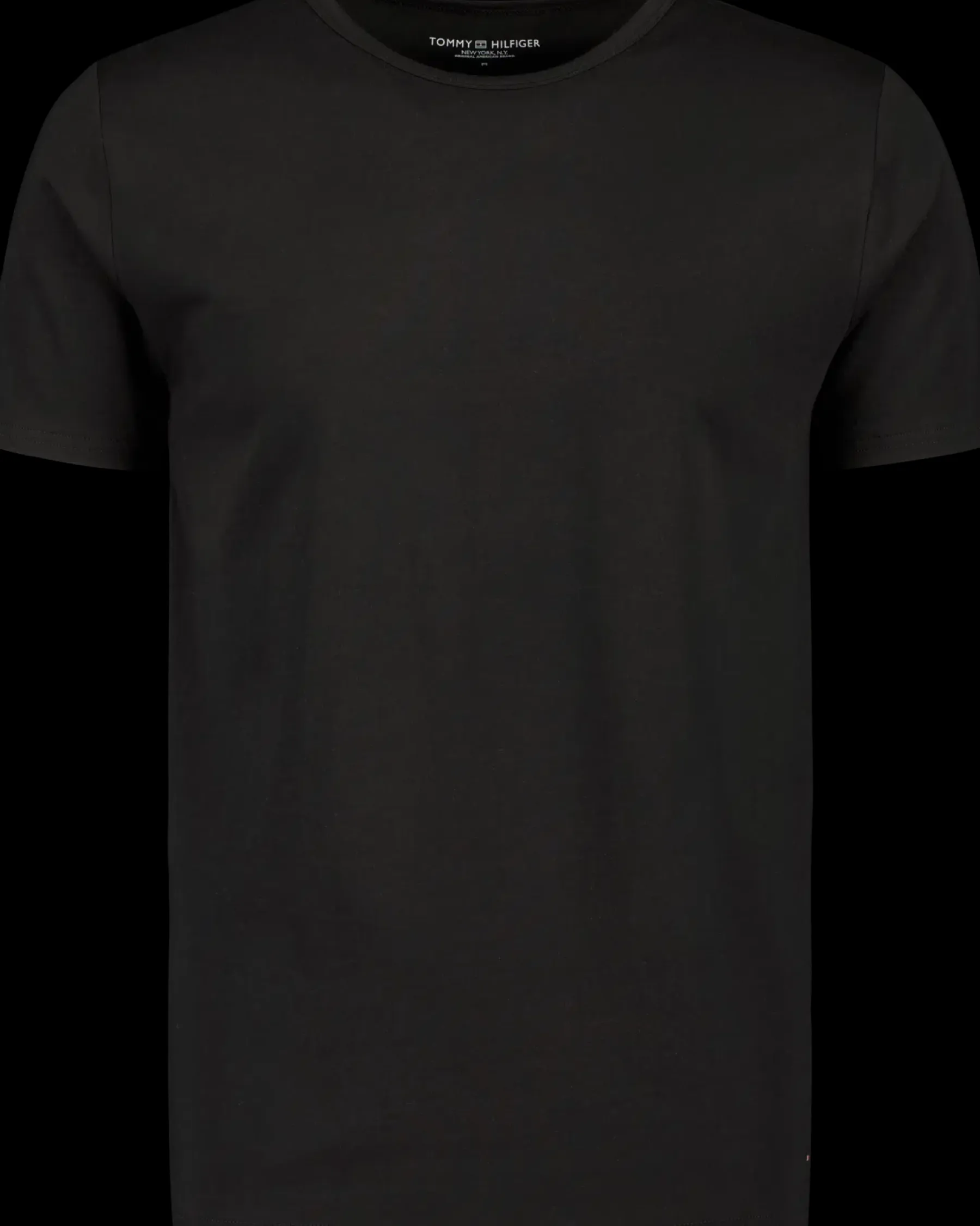 Pakkauksessa on kolme mustaa t-paitaa. Pyöreä pääntie. Hillitty Tommy Hilfiger logo paidan helmassa.