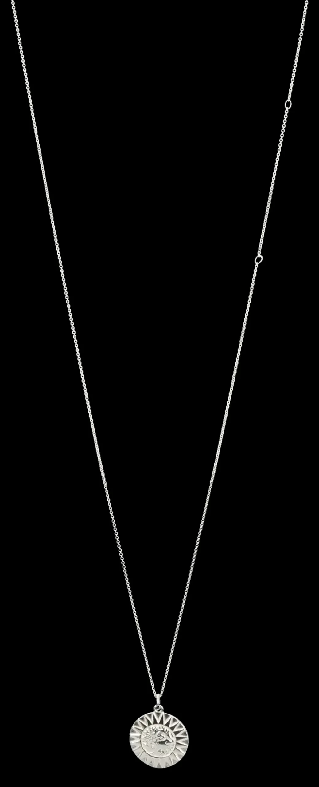 Suunnittelija Lina Simons. Ketjun pituus säädettävissä 4 eri pituuteen 30-60 välillä. Riipuksen korkeus 26 mm. Leijona, eläinten kuningas, on voiman ja mahdin symboli. Uljas aurinkoleijona, jonka tuuhea harja leviää kuin auringon säteet, koristi alkujaan pienen pyöreän pyhäinjäännösrasian kantta, vartioiden ylväänä rasian arvokasta sisältöä. Aurinkoleijona tuo viestin ajasta, jolloin kristillisen Euroopan vaikutteet välittyivät Itämeren saarten kautta suomalaisten keskuuteen. Pue yllesi Aurinkoleijona saat leijonan voiman ja rohkeuden.