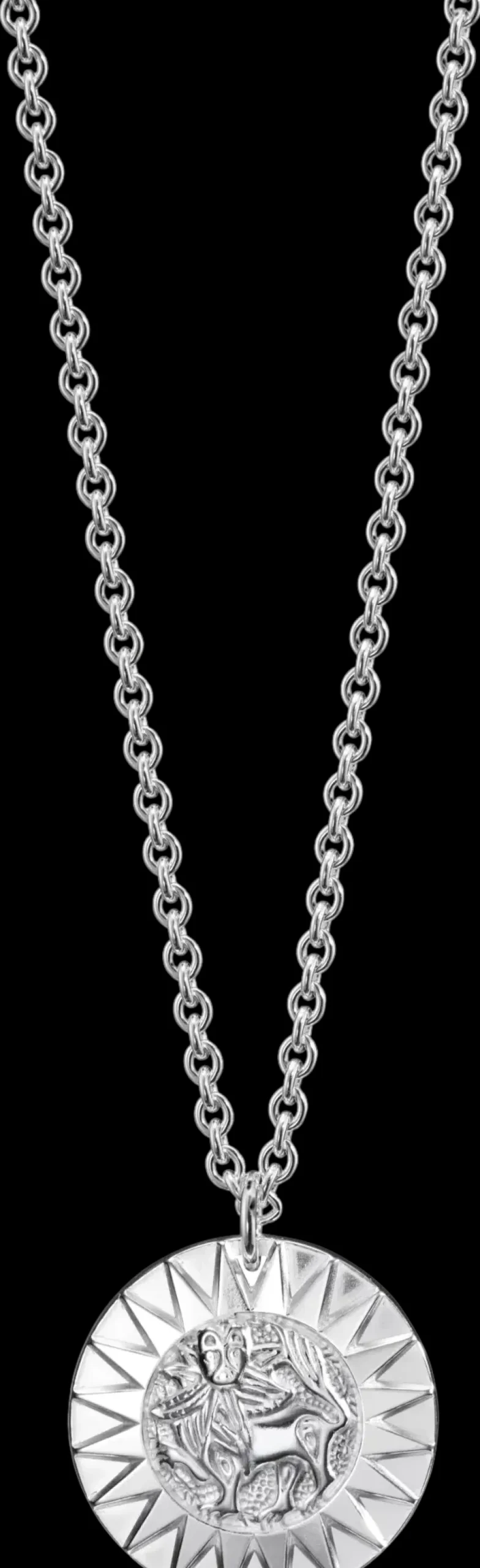 Ison Aurinkoleijona-riipuksen halkaisija on 25 mm. Ankkuriketjussa on säädettävä pituus 55/60 cm. Näyttävä koko ja paksumpi ketju edustavat unisex-muotoilua. Suunnittelija Lina Simons.