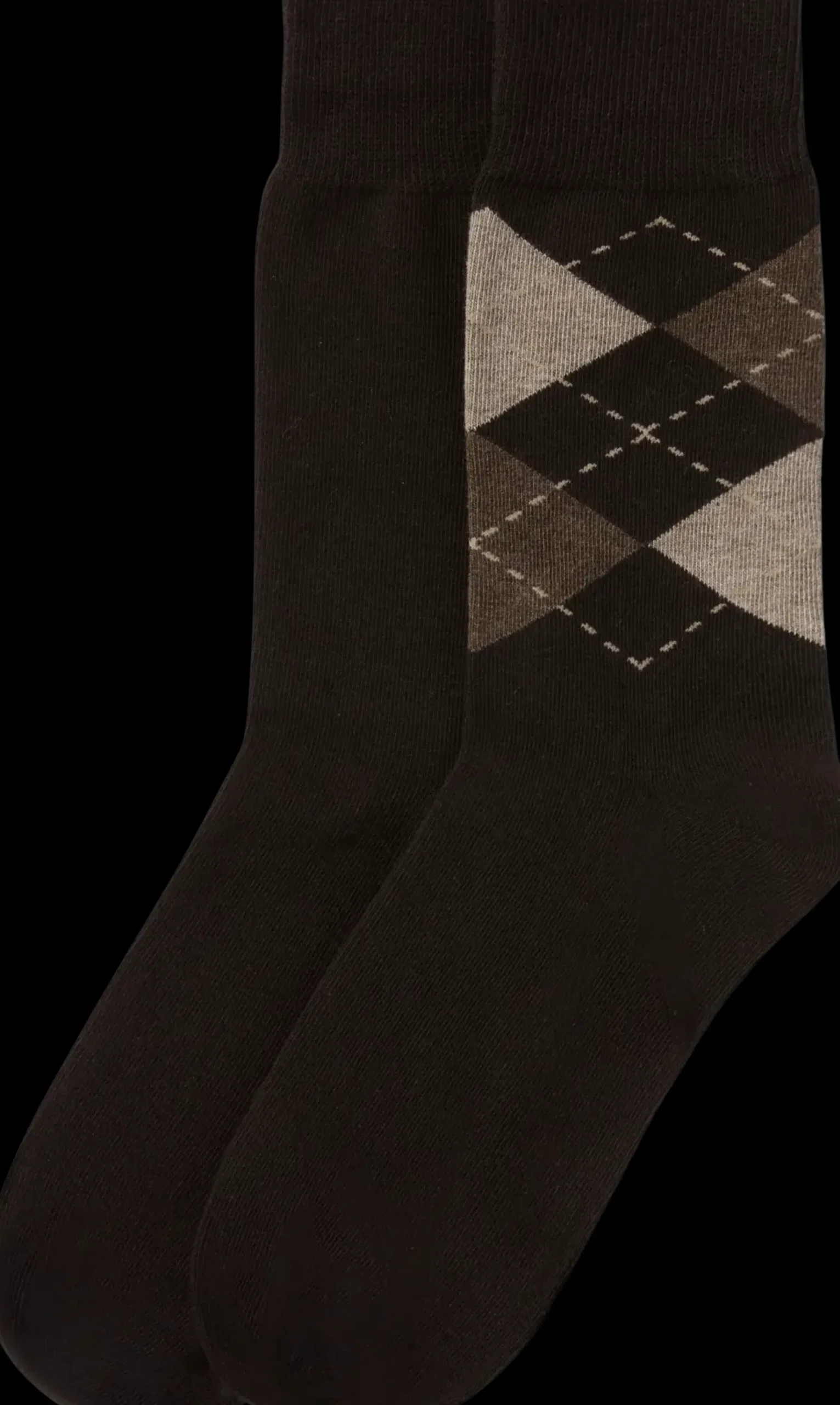 2 parin pakkaus puuvillasukkia, joissa on keskipitkä varsi ja ribbineulottu yläreuna. Settiin kuuluu yksi argyle-kuvioitu pari ja yksi yksivärinen pari. Saatavilla useissa helposti yhdisteltävissä väreissä. Sukissa on vahvistetut kärki- ja kantasaumat, jotka lisäävät käyttömukavuutta ja kestävyyttä.