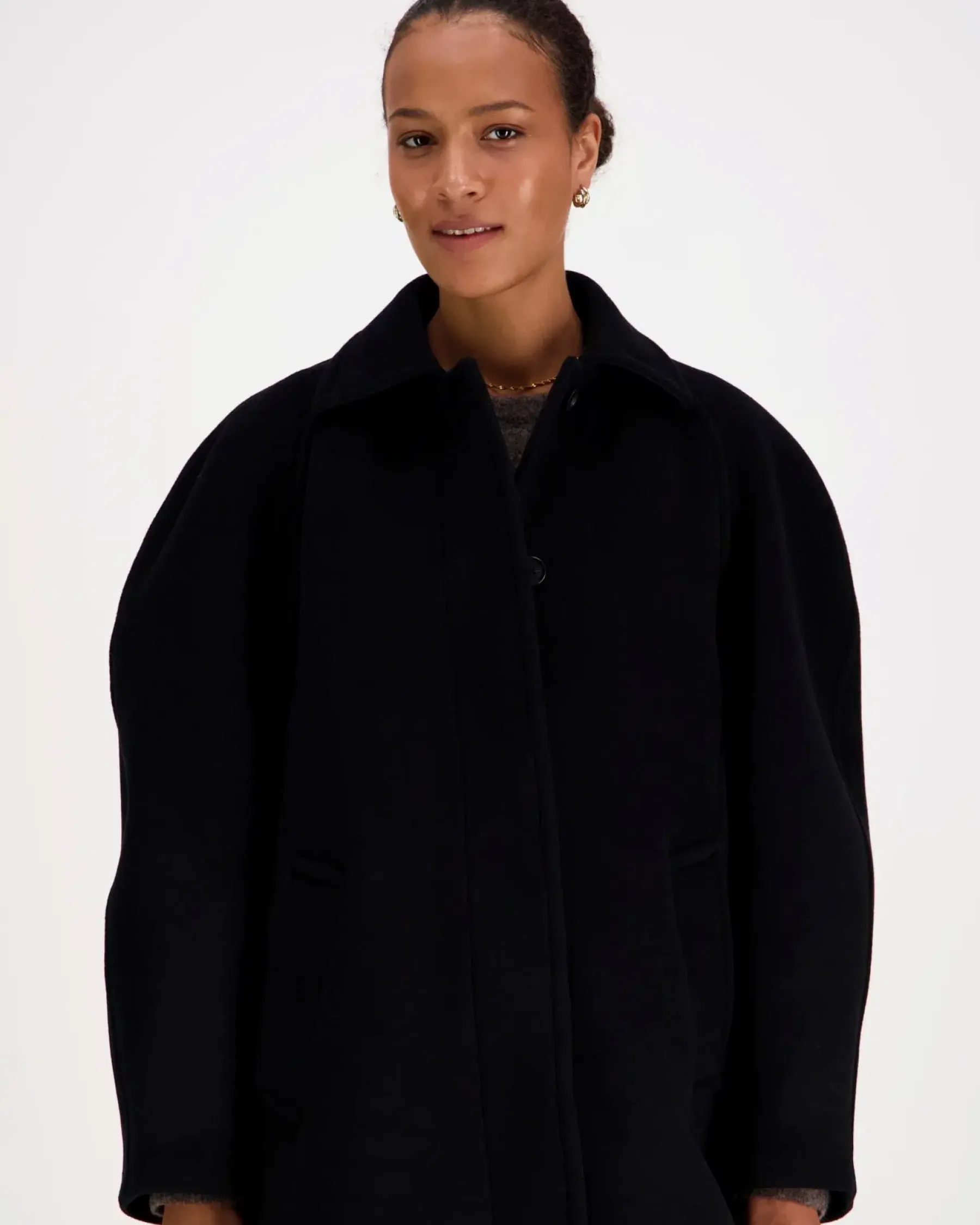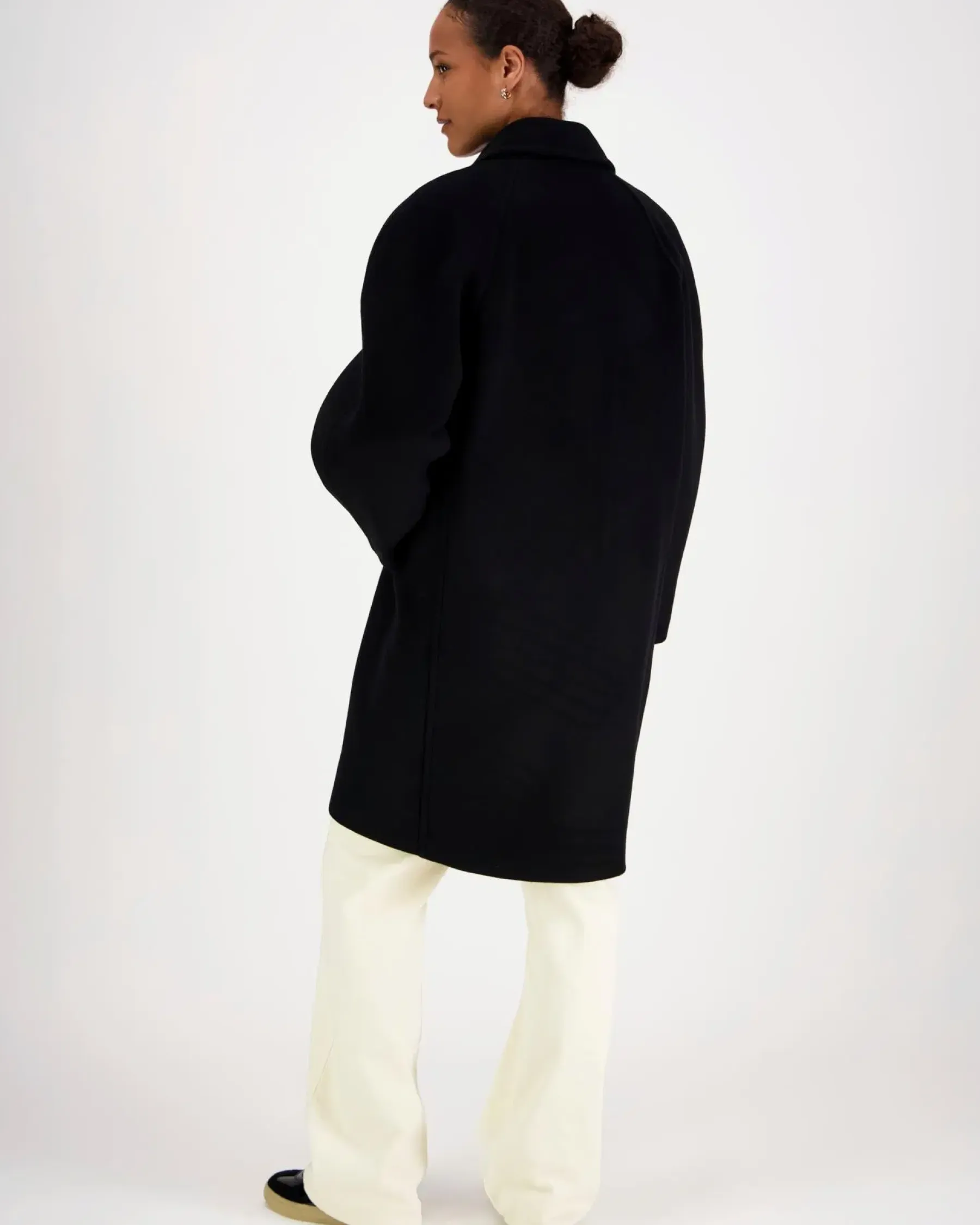 Raglan-hihainen villakangastakki, täysin vuorattu, sisätasku.