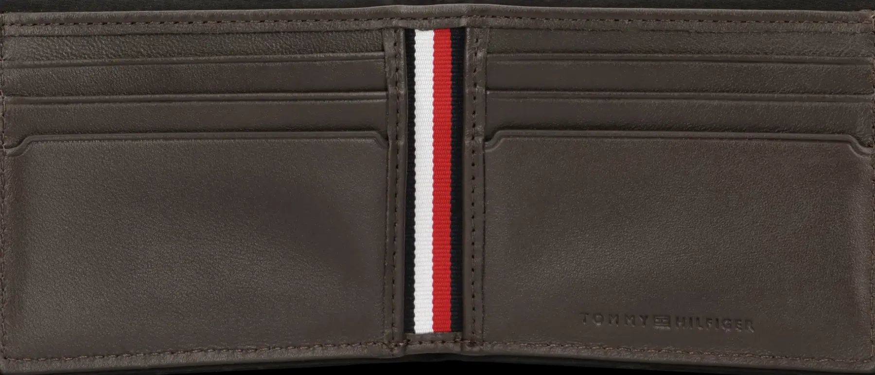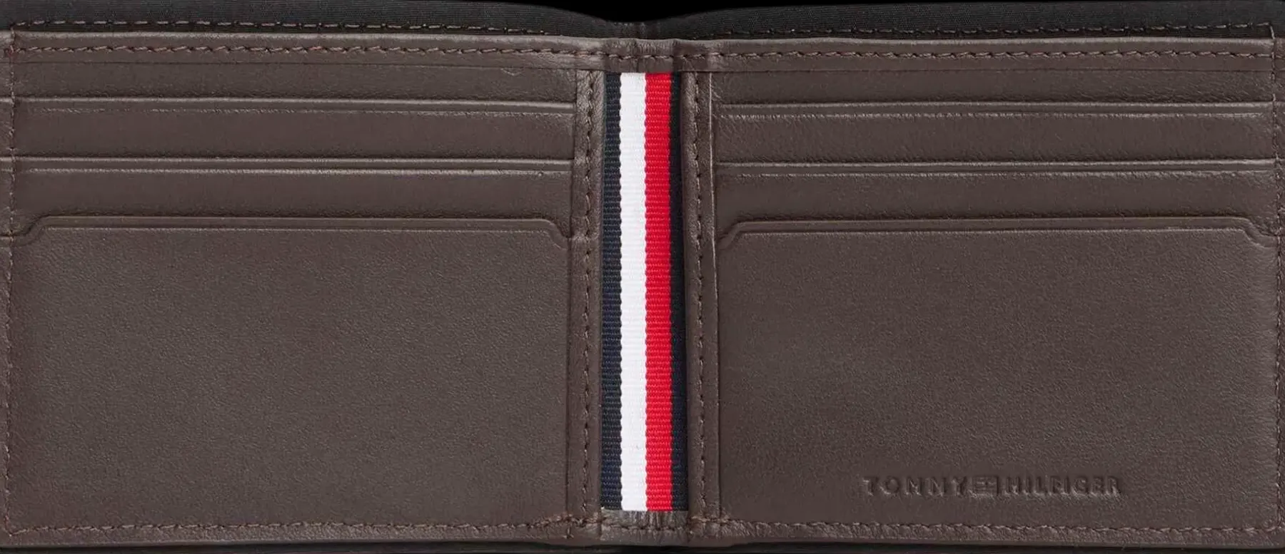 Kahtia taittuvassa lompakossa on useita korttipaikkoja sekä lokero kuiteille ym papereille.