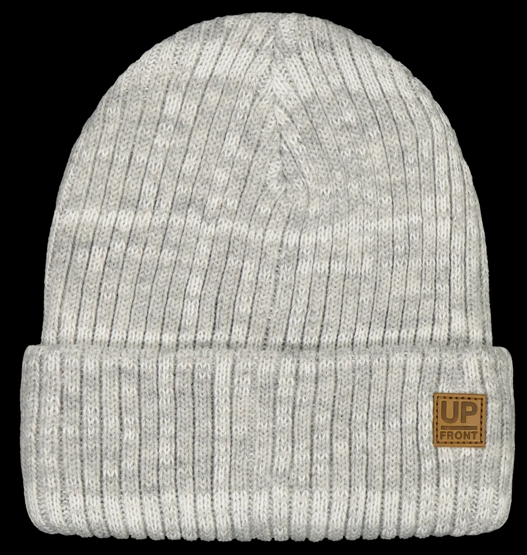 Upfrontin meleerattu ja ribbineulottu pipo, jossa on käännettävä reuna ja pieni merkki sivussa.