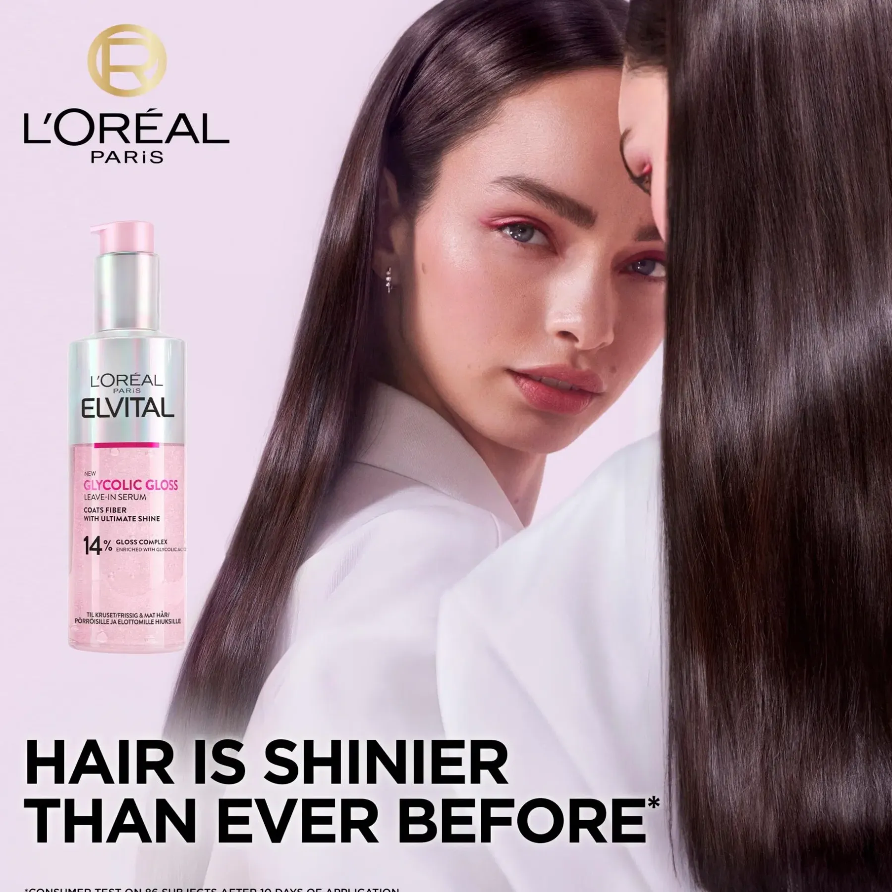 Elvital Glycolic Gloss- sarja on kiiltoa antava kotona käytettävä hiustenhoitorutiini, jonka tuotteet korjaavat hiuksia, tekevät hiusten kunnosta paremman ja antavat pitkäkestoista kiiltoa. Seerumi tekee hiuksista 82% kiiltävämmät*, 54% sileämmät** ja 75% vähemmän pörröiset***.