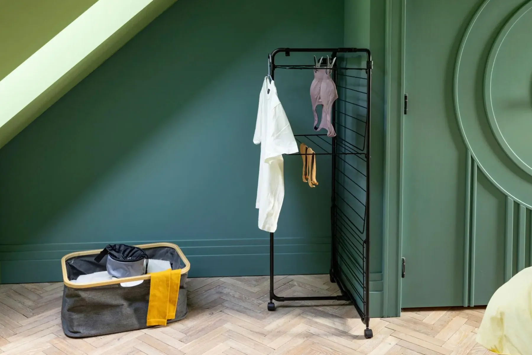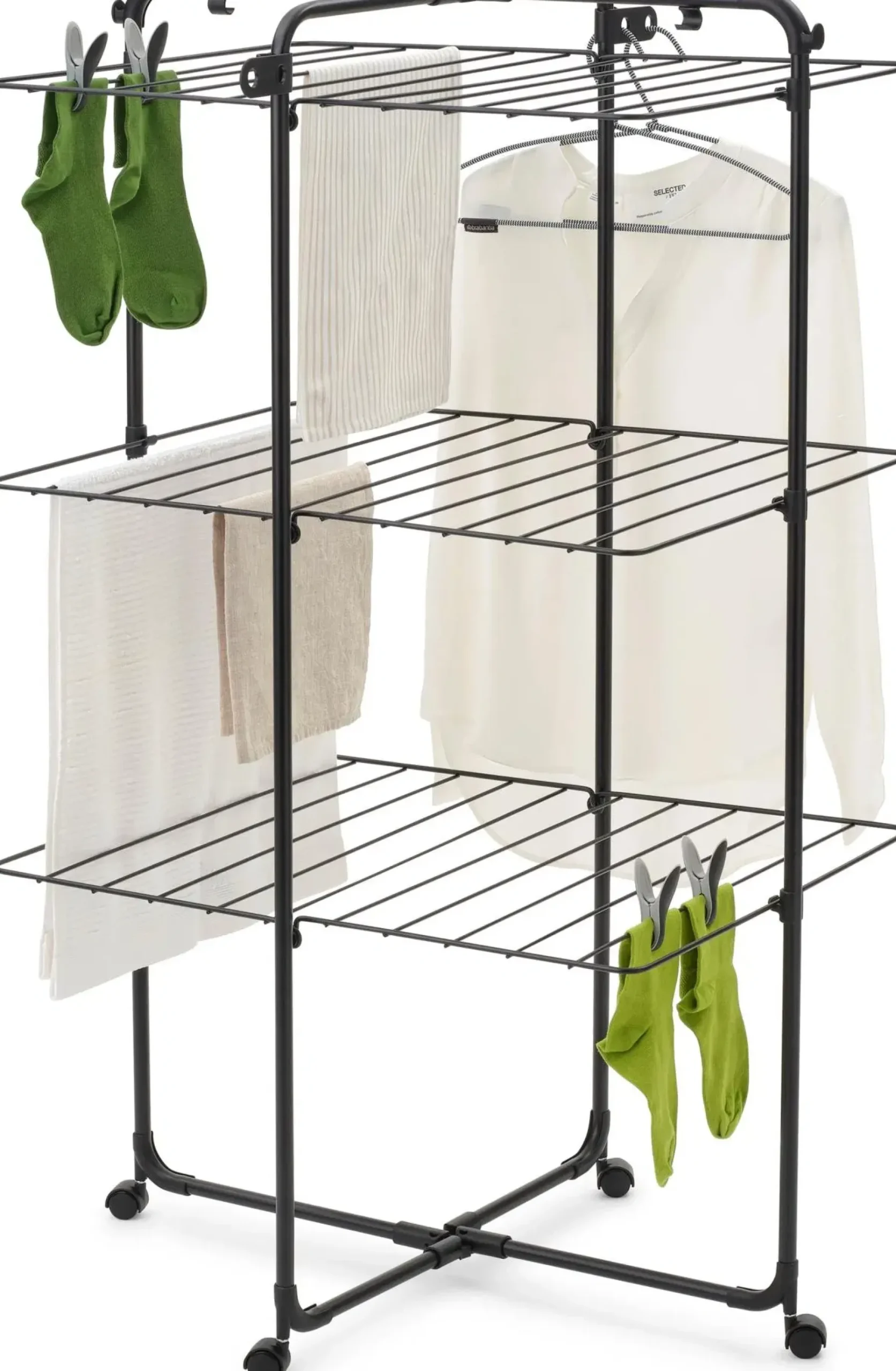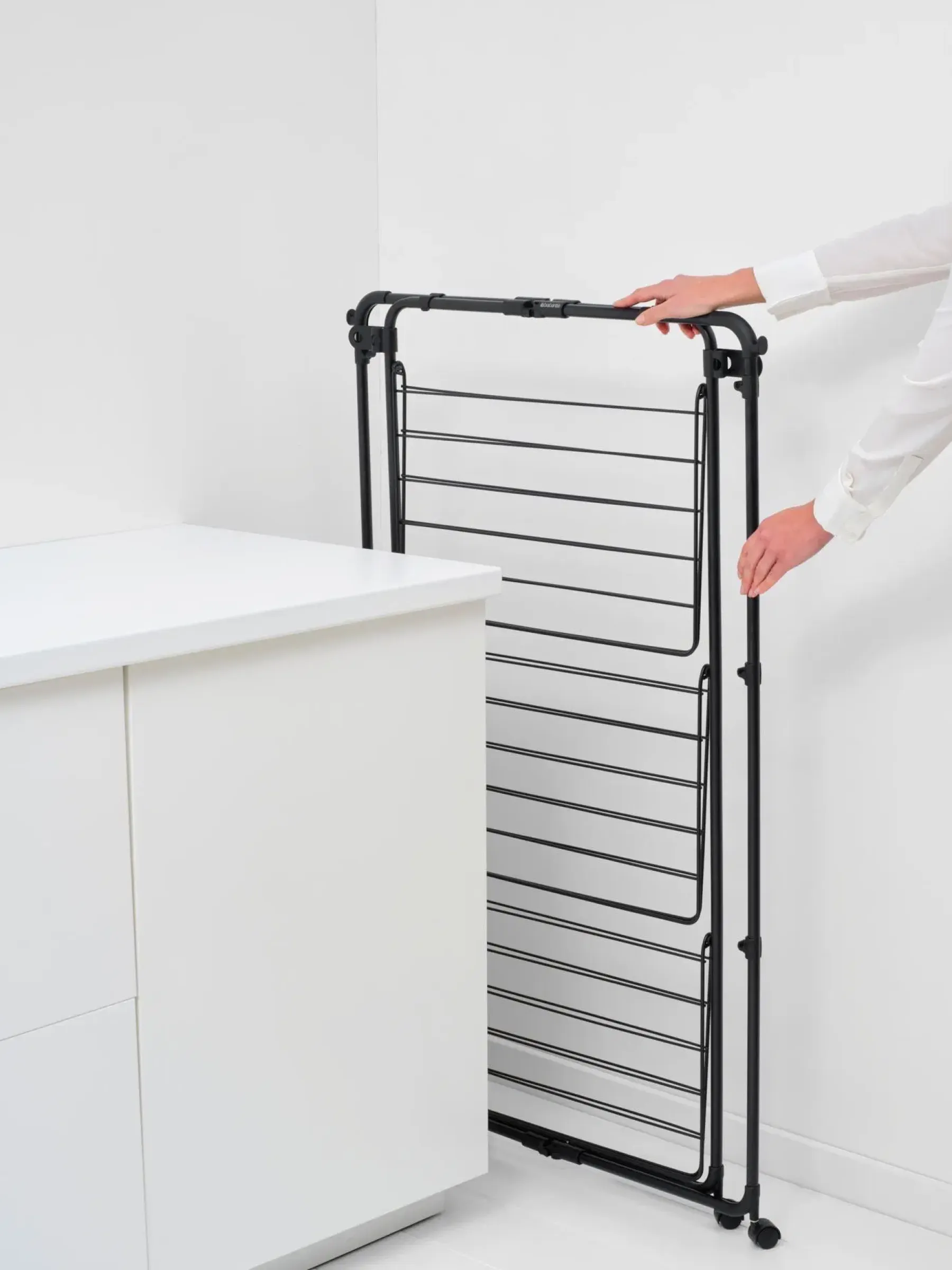 Säästä energiaa kuivattamalla pyykkisi luonnollisesti, ja säästä tilaa ripustamalla ne tähän Brabantia HangOn Tower pyykinuivaustelineeseen! Tämä fiksu kuivausteline vie vain vähän lattiatilaa, mutta siinä on 23 metriä joustavaa kuivaustilaa sekä ylimääräisiä koukkuja ja pidikkeitä vaateripustimille. Siinä on kolme kuivaustasoa, jotka voidaan taittaa tarpeen mukaan, joten se sopii myös pitkille pyykeille kuten pyyhkeille. Neljän pyörän ansiosta sitä voi käännellä ja siirrellä. Kun kaikki pyykit ovat kuivia, se taittuu kätevästi pieneen tilaan säilytystä varten. Kuljetuslukot pitävät rungon koossa, ja toimivat myös koukkuina. Ostamalla tämän telineen autat myös WeForestia istuttamaan lisää puita. Haluatko hengailla? Säästää tilaa – suuri kuivauskapasiteetti, vie vähän lattiatilaa.Tilaa yli kahdelle koneelliselle pyykkiä – 23 metriä kuivaustilaa.Joustava – taita tai avaa kolme kuivaustasoa pienille ja suurille pyykeille.Helppo ripustaa, nopea kuivuminen – leveä väli rivien välillä.Helppo liikuttaa – neljä tukevaa pyörää.Kompakti kuivaus myös – rungon voi taittaa puoliväliin vain yhden puolen käyttöä varten.Lisää ripustustilaa – kaksi kulmakoukkua ja pidikkeet ylimääräisille vaateripustimilleKompakti säilytys – kuljetuslukot pitävät rungon koossa taitettuna ja toimivat koukkuina auki taitettuina.Helppo koota – askel askeleelta etenevä ohjekirja mukana.Ongelmaton käyttää – 5 vuoden takuu ja huolto.Tietoinen valinta – valitse luonnollinen kuivaus, tukien samalla WeForestia puiden istuttamisessa.Kierrätettävyys – valmistettu 38% kierrätysmateriaalista ja 96% kierrätettävissä käytön jälkeen.Kiertokulku – Cradle-to-Cradle®-sertifioitu, hopeataso