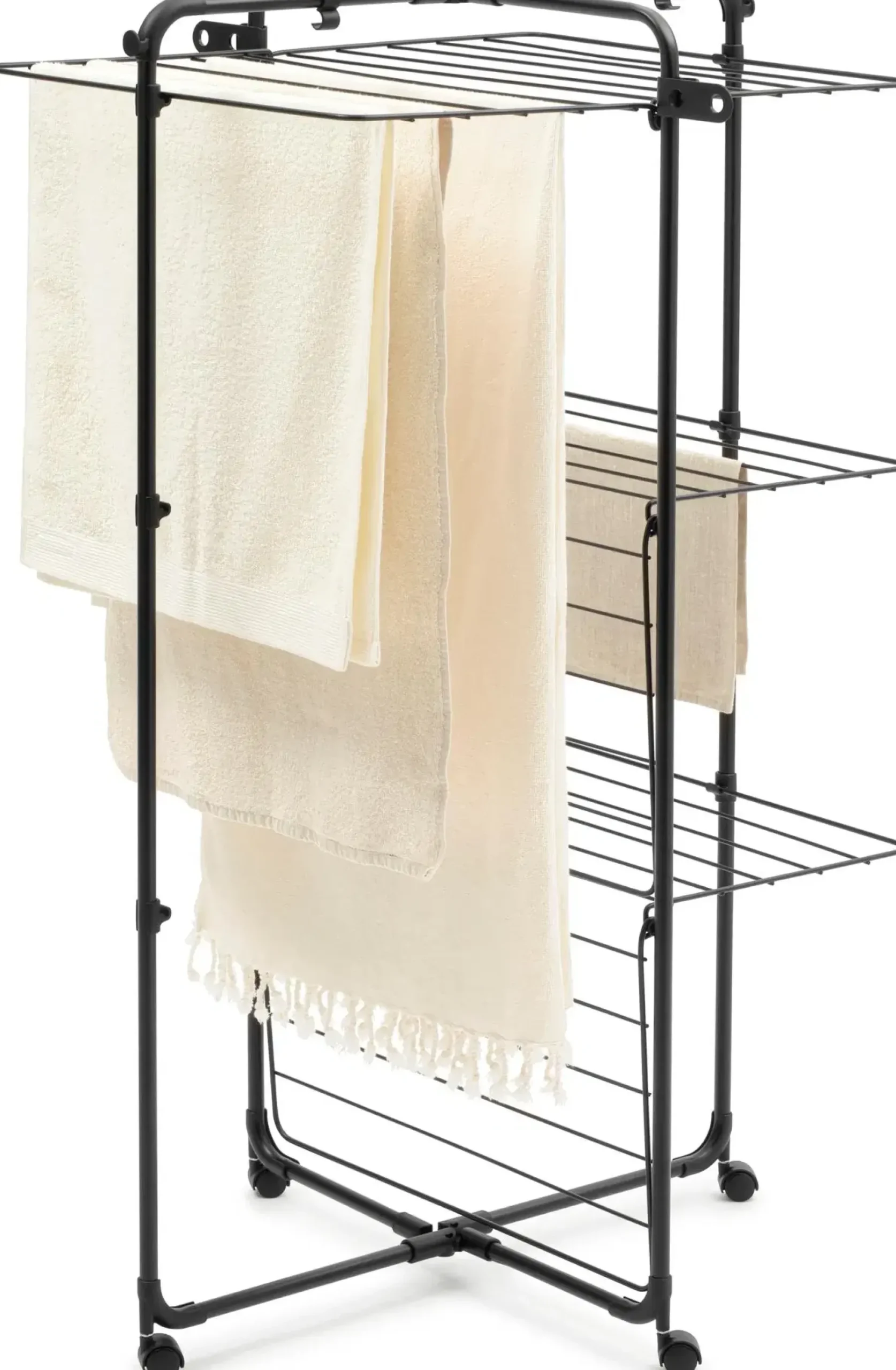 Vain sisäkäyttöön. Kuivaustelineen maksimikuorma on 25 kg, kun kuorma on tasaisesti jakautunut telineelle.