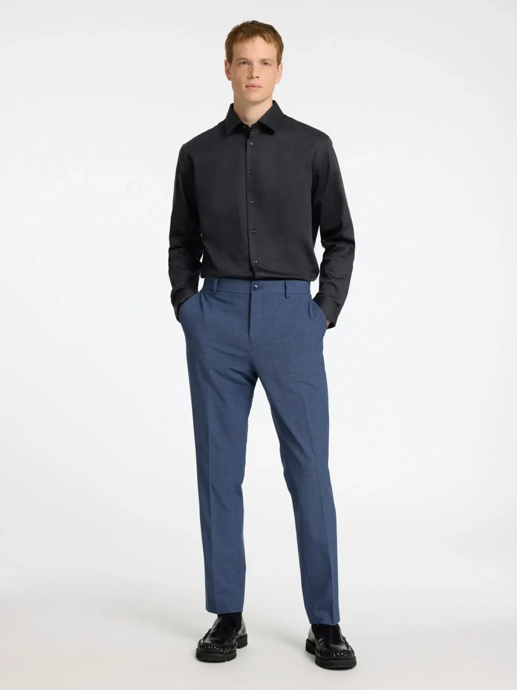 Tämä vaatekaapin perusta pukupaita on valmistettu korkealaatuisista kankaista. Se on täydellinen valinta toimistolle, erityistilaisuuksiin tai mihin tahansa päiväsi tuo mukanaan. Kaareva helma ja käsittely pehmeää tuntumaa ja mukavaa käyttöä varten. Kapea mitoitus takaa modernin ja siistin ilmeen. Tämä paita on varma valinta tyylikkääseen ja huoliteltuun olemukseen.