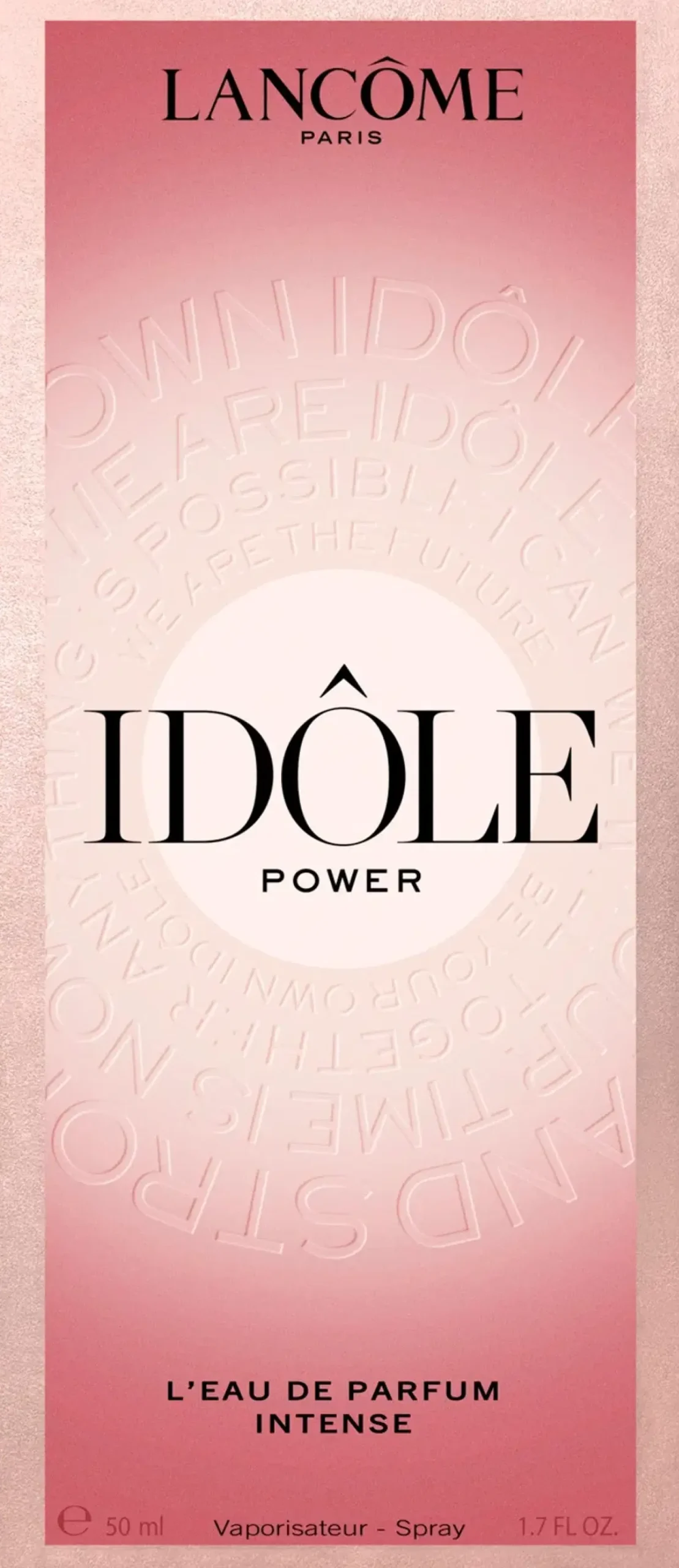 Idôle Power Eau de Parfum Intense on Idôlen ensimmäinen metsäinen kukkaistuoksu, todellinen luomus, jossa täyteläinen ja elinvoimainen santelipuu kohtaa vahvan ruusun tuoksun. Ainesosien yhdistelmä, joka antaa samalla voimakkaan ja hedelmäisen tuoksun, jota vahvistaa innovatiivinen hedelmäinen Pomarose-molekyyli. Latvatuoksu: POMAROSE Vangitseva pomarose tuo tuoksun historian keskipisteeseen hedelmäisyyden ja kukkaisuuden loputtoman kaksinaisuuden. Punaisesta pienestä omenasta inspiraationsa saanut pomarose-vivahde saa kaipaamaan sitä lisää ja siitä tulee kiinteä osa tapaasi. Sydäntuoksu: DAMASKONRUUSU Idôle Power vangitsee sisäänsä niin tunnusomaisen DAMASCENA ROSE -ruusumme kuin sydämesikin. Käytämme haihtuvia ruusumolekyylejä, joista voi aistia sekä raikkaita ruusun terälehtiä ja aistillisen ruusukimpun, joka korostaa ruusun olemusta ja tarjoaa todella tunnusomaisen tuoksuelämyksen. Ainutlaatuisen eloisa kukkaistuoksu, joka sädehtii kukkapellon vastustamatonta kutsua loputtomiin. Pohjatuoksu: TÄYTELÄINEN SANTELIPUU Idôle Power laukaisee aistillisuuden pehmeän täyteläisellä santelipuun tuoksulla. Syvä ja täyteläinen metsäinen tuoksu, joka on peräisin Länsi-Australiasta ja jossa on tilaa voimakkaalle, täyteläisen pehmeälle sävylle. Uppoudu eloisan santelipuun syvään, täyteläiseen metsäiseen ja voimakkaasti riippuvutta aiheuttavaan tuoksuun. Liity Idôleen. Liity osaksi voimaa olemalla oma itsesi. Idôle Powerin kanssa hetkesi näyttämöllä ei lopu koskaan. Vaadi tuoksua, joka antaa sinulle mahdollisuuden olla. Merkki, joka kapseloi ja aloittaa matkasi täydellisesti. Älä koskaan lakkaa olemasta oma itsesi.