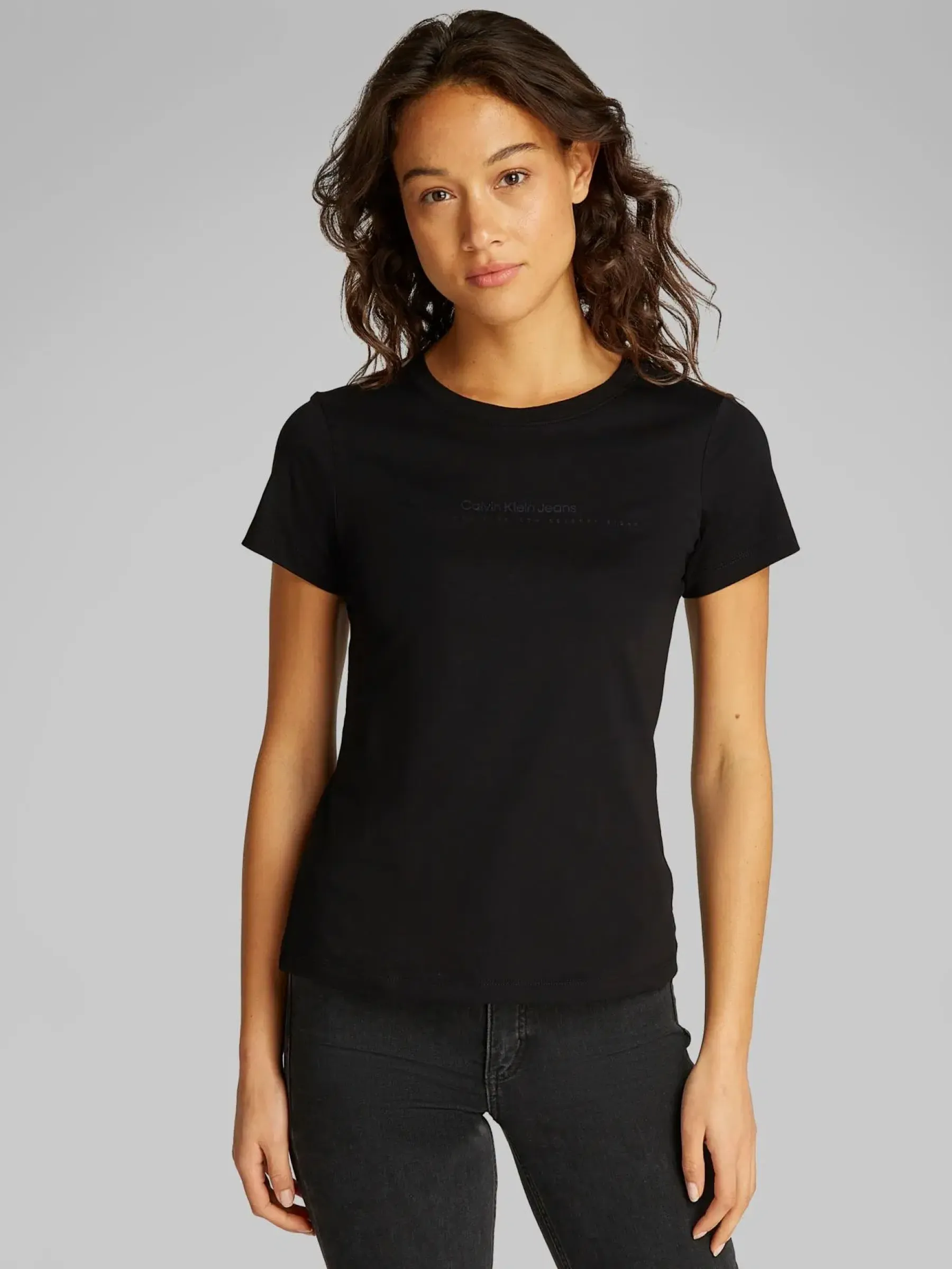 CK Jeans t-paita, jossa o-pääntie, lyhyet hihat ja logo edessä, 100% puuvillaa.