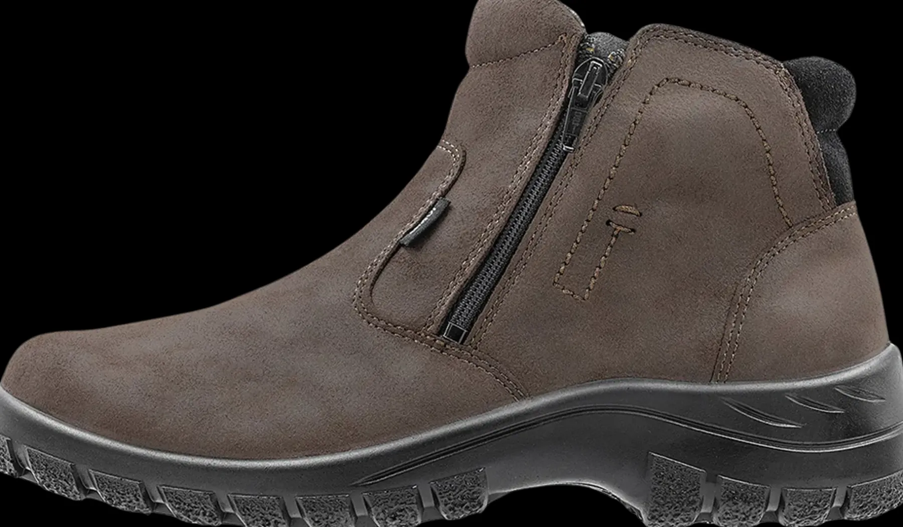 Miesten ruskea nilkkurikenkä missä vetoketjut sivuilla helpottamassa jalkaan pukemista. Päällinen silitettyä haljasta. Lämmin huopavuori ja lämpöpohjallinen pitävät jalat lämpiminä. Pitävä Sievi TractionPro® -pohja. Valmistettu Suomessa.