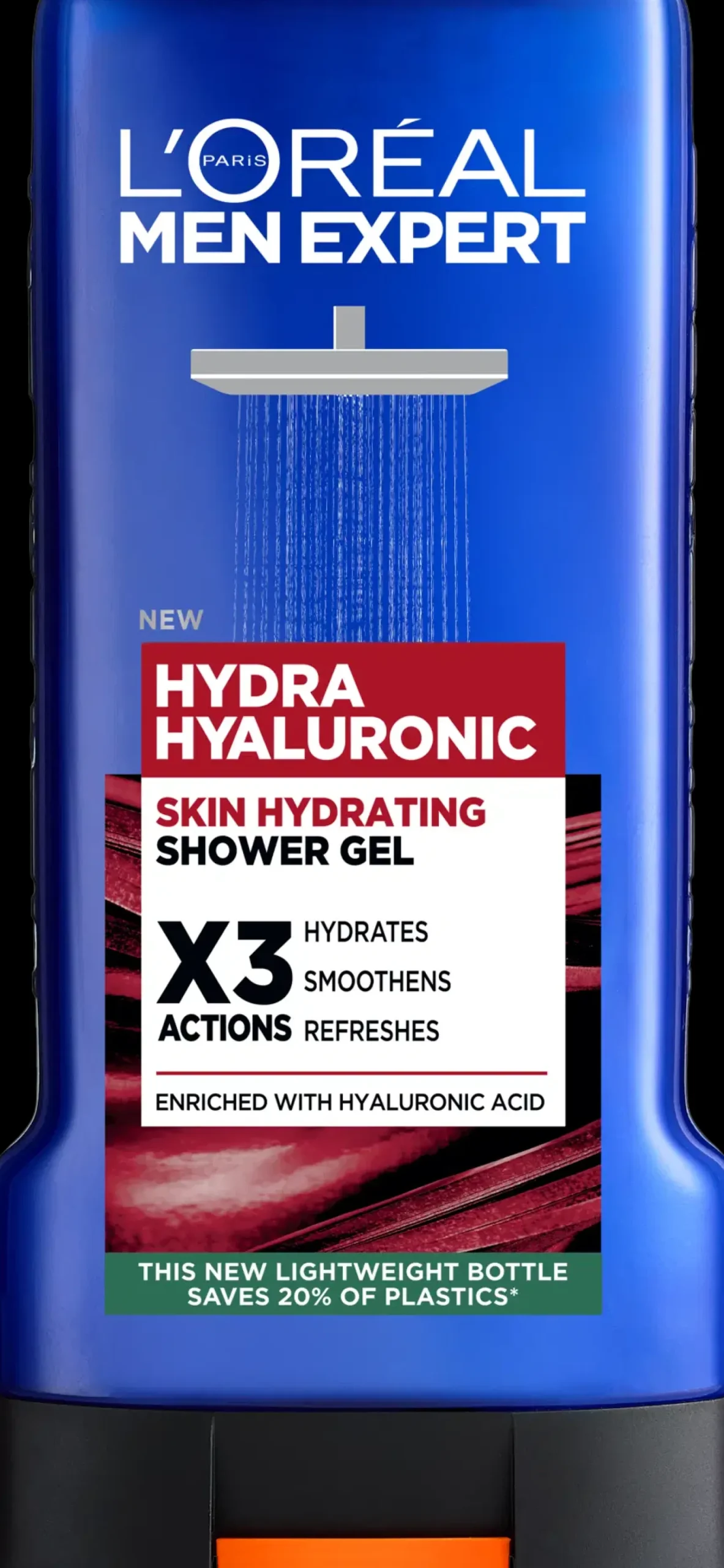 L´Oréal Paris Men Expert Hydra Hyaluronic Hydragel -suihkugeeli sopii kaikille ihotyypeille. Koostumus toimii kolmella tavalla: kosteuttaa, silottaa ihoa ja antaa puhtaan ja raikkaan tunteen. Koostumus sisältää hyaluronihappoa. • Sopii kaikille ihotyypeille • Kosteuttaa, silottaa ihoa ja saa sen tuntumaan miellyttävältä • Koostumus sisältää hyaluronihappoa • Puhdas ja raikas tunne • Käytä osana pesurutiiniasi.