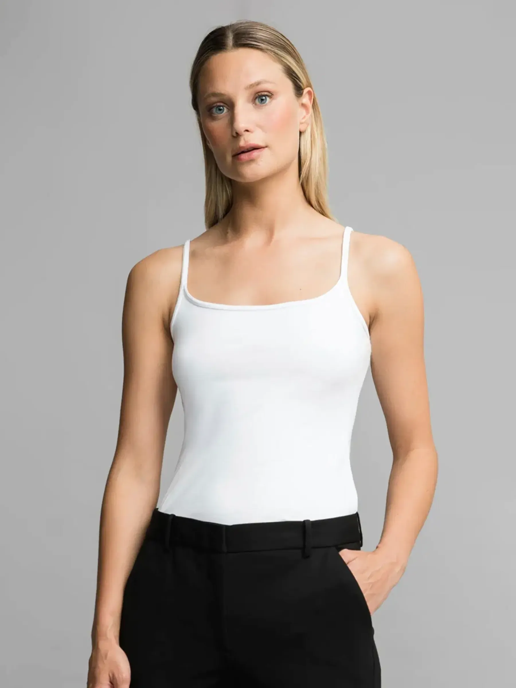 Kevyt, kapeaolkaiminen toppi.