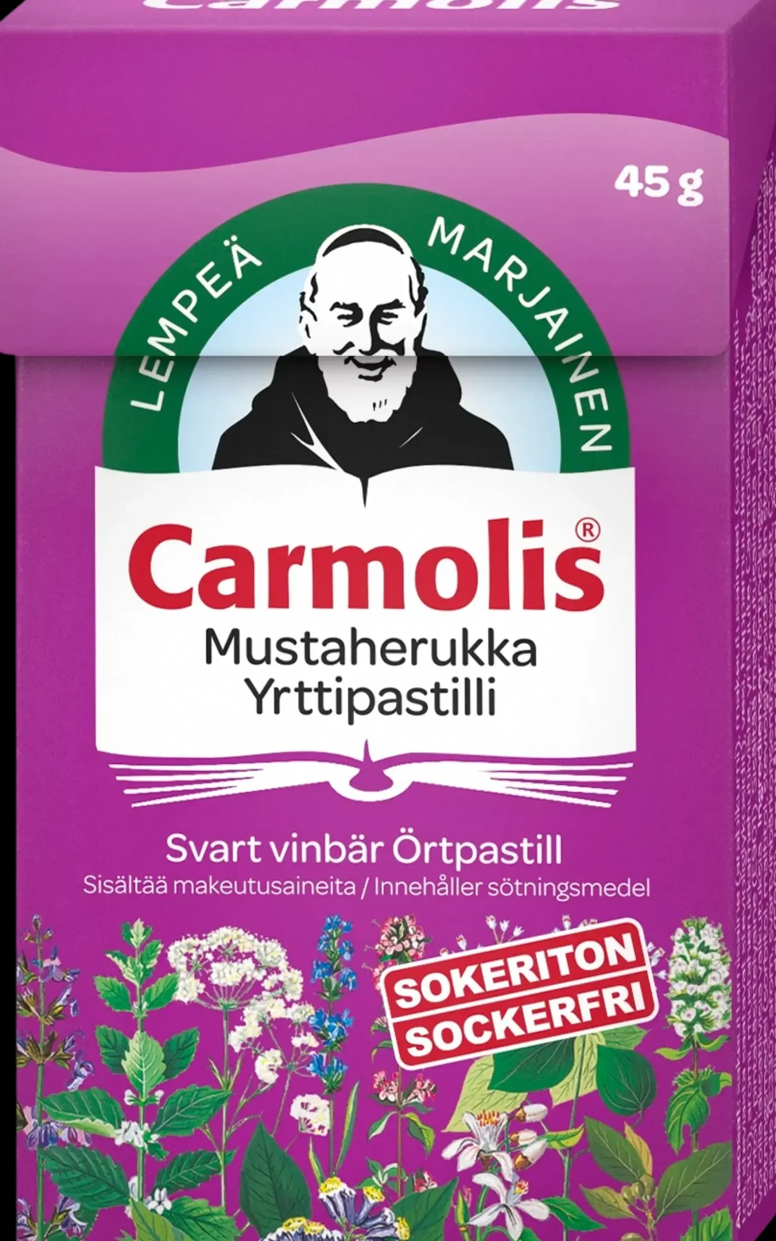 Carmolis Mustaherukka Yrttipastilli on lempeän marjainen Carmolis-pastilli. Pastillit lievittävät tehokkaasti käheää kurkkua ja kirkastavat ääntä. Pehmeää pastillia voi imeskellä pitkään. Carmolis Yrttipastillit sisältävät reilusti Carmolis Yrttitipoista tuttua yrttien eteeristen öljyjen seosta, joka takaa tehokkaan vaikutuksen.