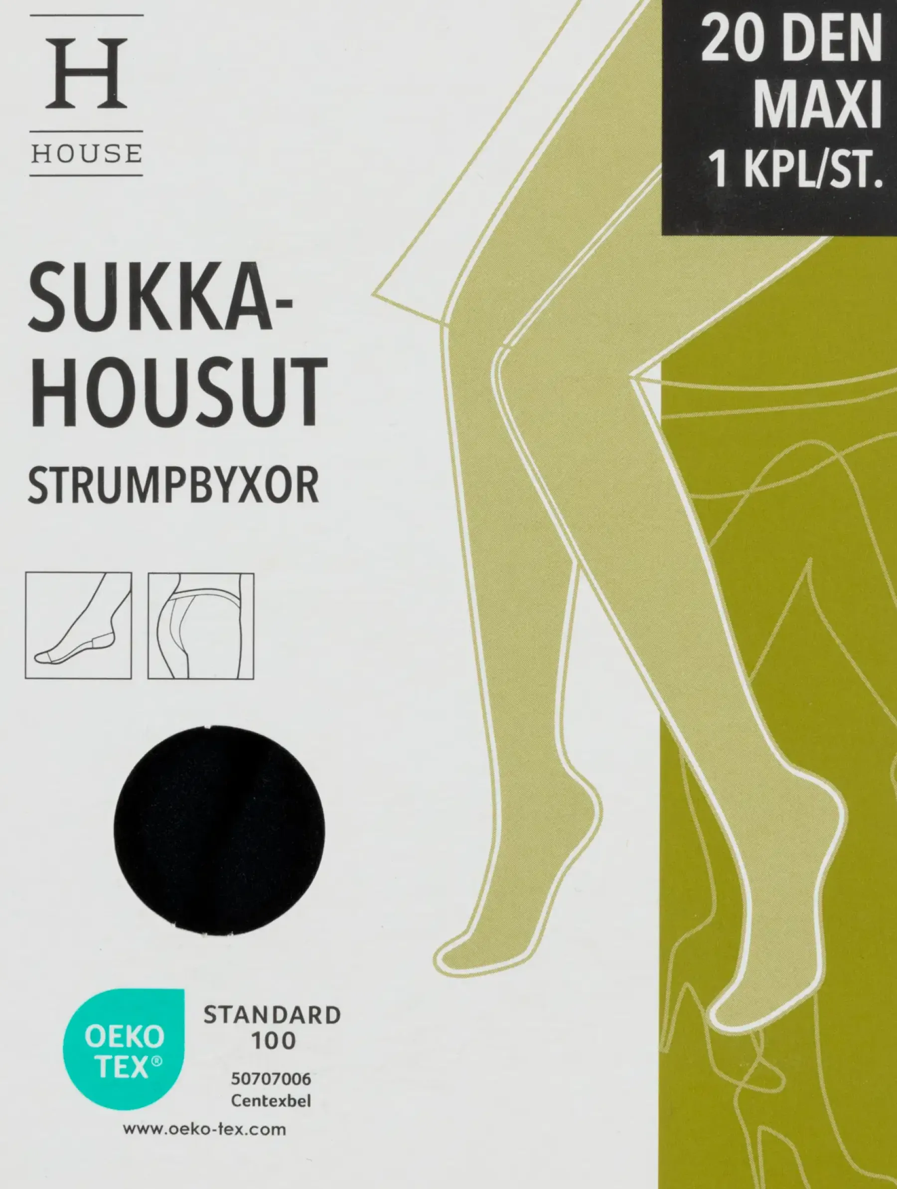Naisten 20 denierin sukkahousut kärki- ja pohjavahvikkeilla. Plus size -malli, jossa leveä takakiila. Materiaali: 100 % polyamidi.