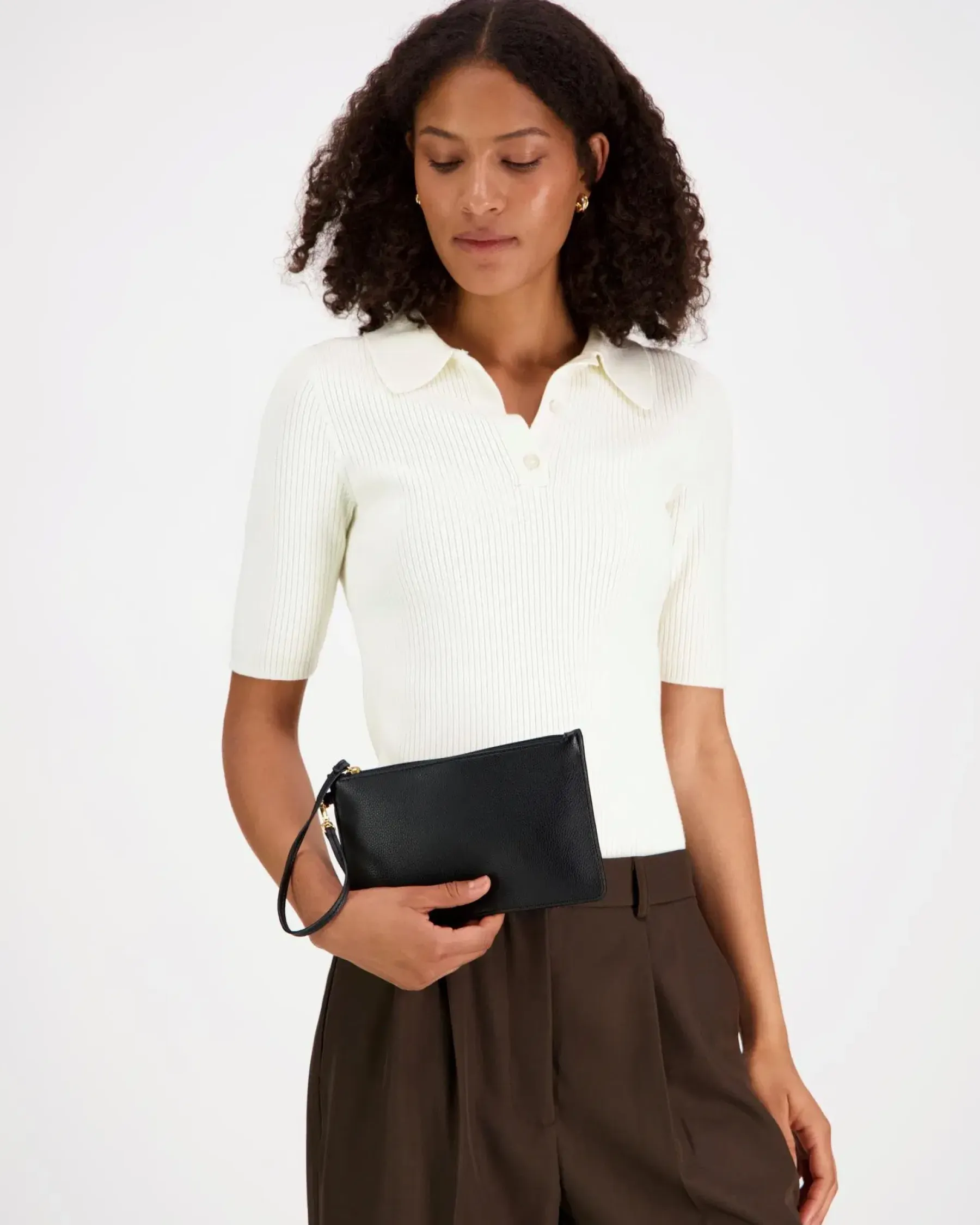 Irrotettava vetoketjullinen sisäpussukka, takana avotasku. Olkakahvat. Suljetaan nepillä keskeltä ja sivuista voi sulkea koukulla, mikä muuttaa laukun muodon pienemmäksi.