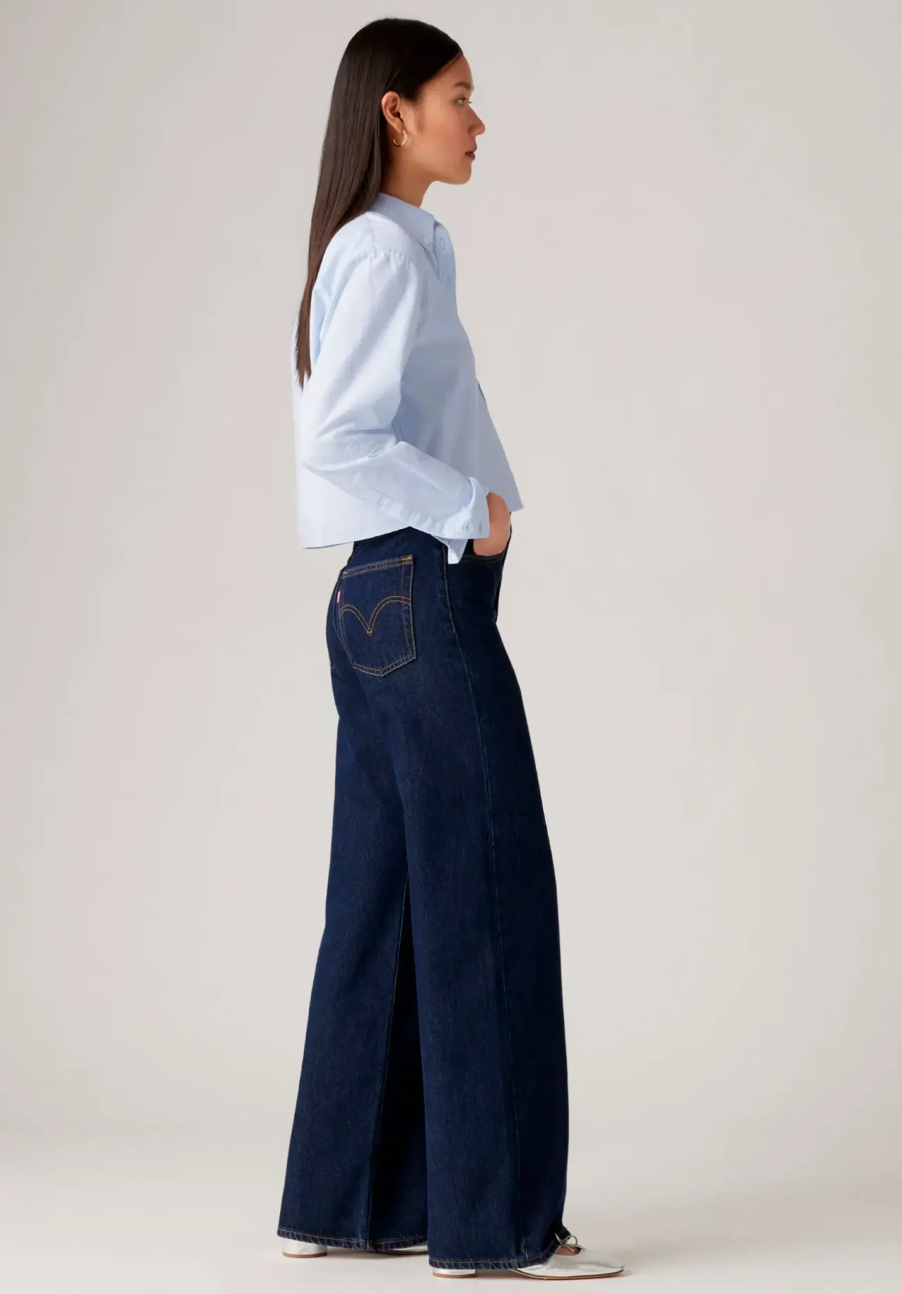 Suosikkifarkkusi Levi’s Ribcage – Näissä farkuissa yhdistyvät imarteleva korkea vyötärö ja väljät lahkeet. Täydellinen yhdistelmä, joka korostaa vyötäröä ja pidentää sääriä. 100% Puuvillaa, joka kestää aikaa, klassinen tummansininen pesu.