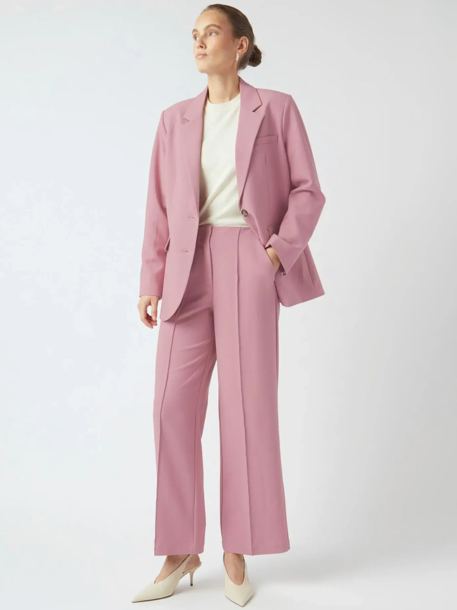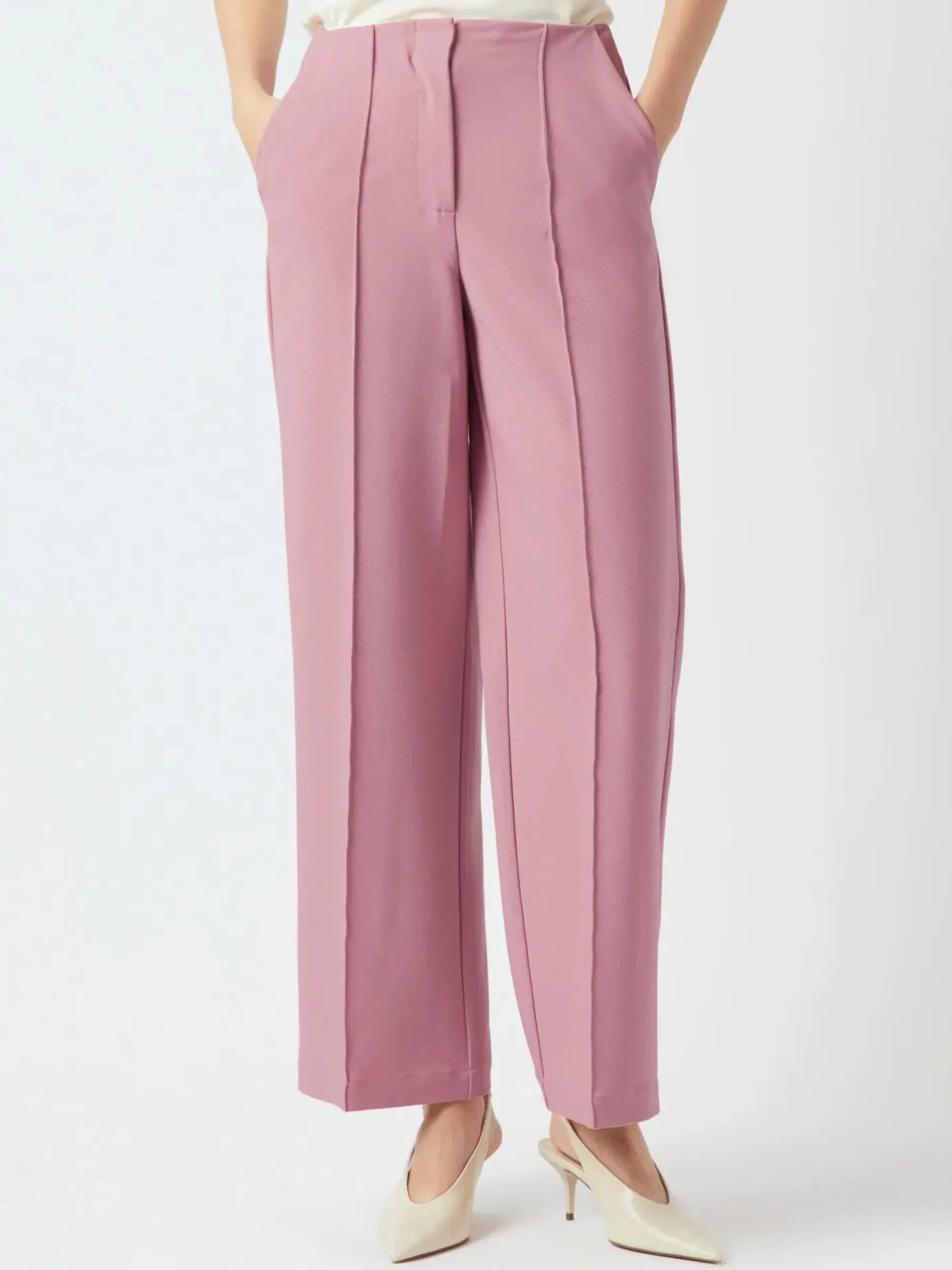 Tyylikkäät korkeavyötäröiset kangashousut vetoketjukiinnityksellä.