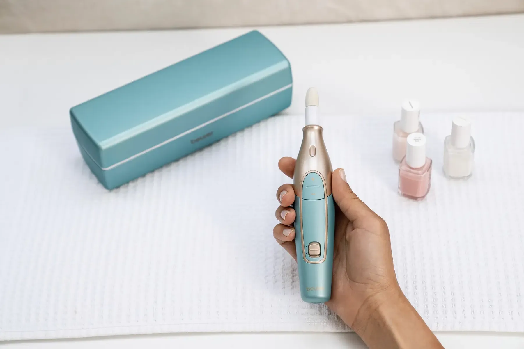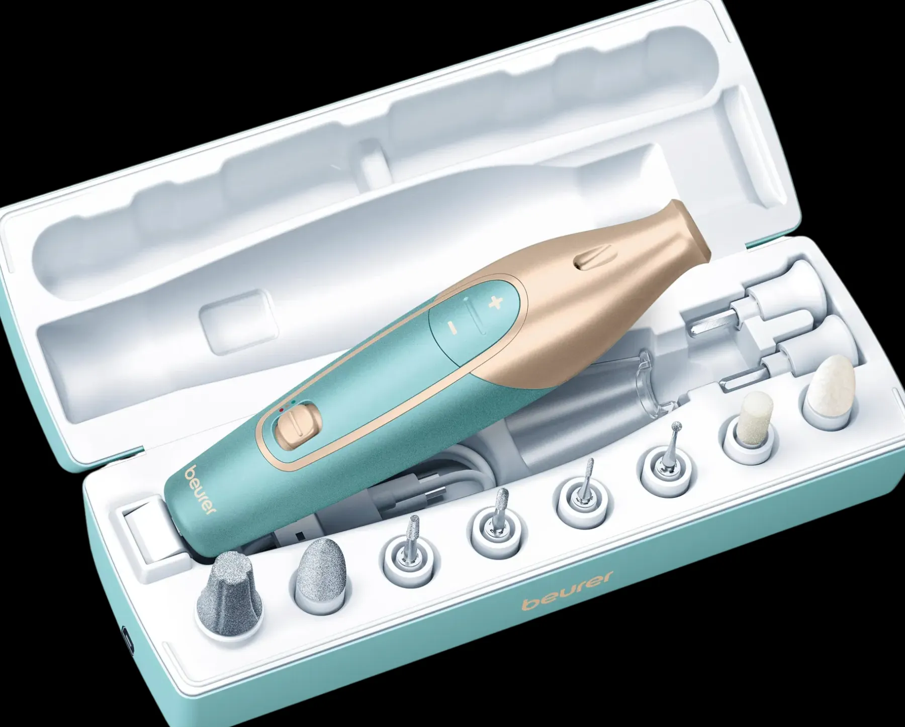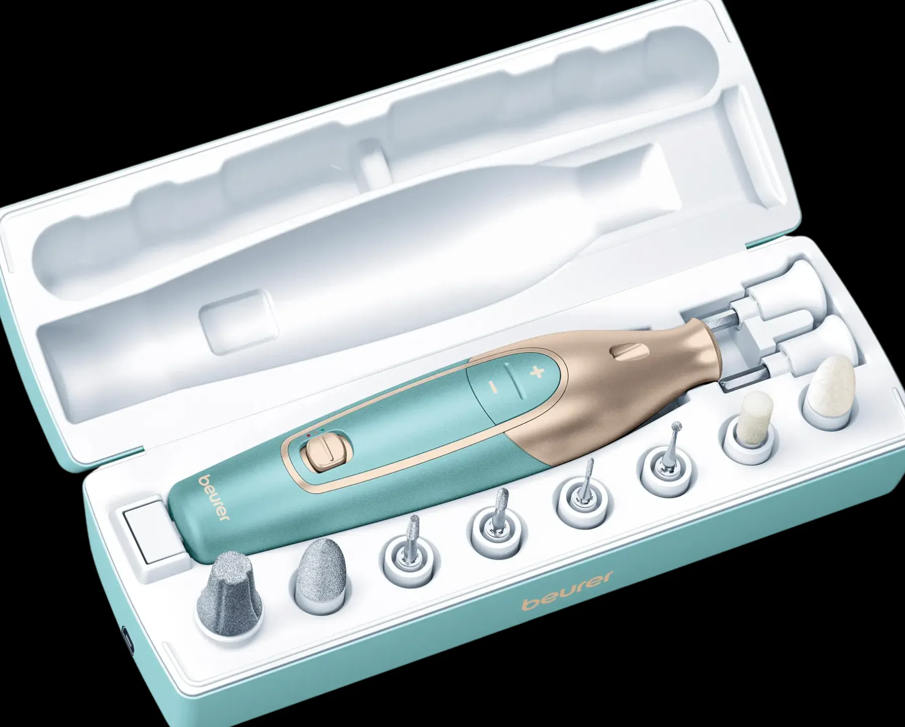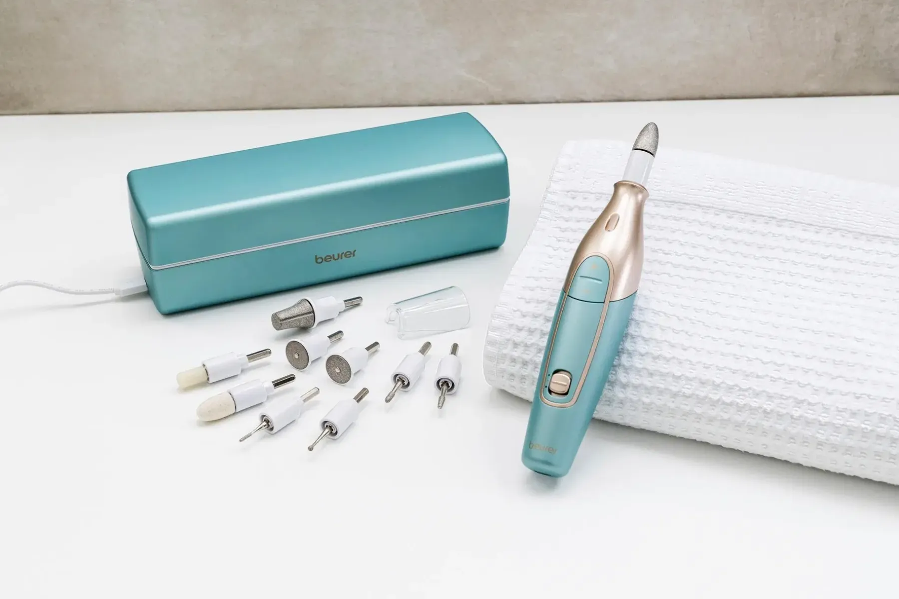 Johdoton kynsileikkuri manikyyriin ja pedikyyriin kauniille käsille ja jaloille. Leikkaa, viilaa, muotoile ja kiillota kynnet tai poista kovettumat, kynsinauhat tai känsät. 10 korkealaatuisen vaihtopään avulla voit tehdä manikyyrin tai pedikyyrin kuin ammattilainen. Käytännöllinen säilytyskotelo toimii myös manikyyrilaitteen latausasemana, ja se on ihanteellinen myös matkoilla.