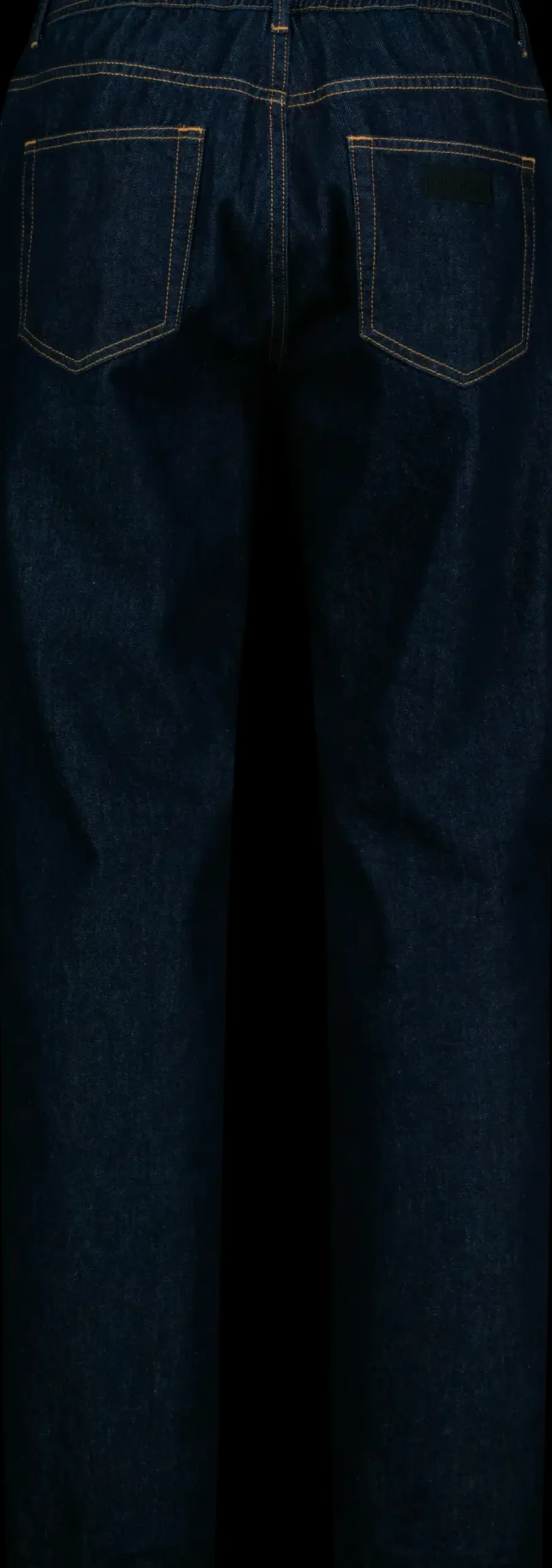 Rennot farkut väljällä mitoituksella ja vyötäröllä kiristysnauha, logo kirjailu takana.